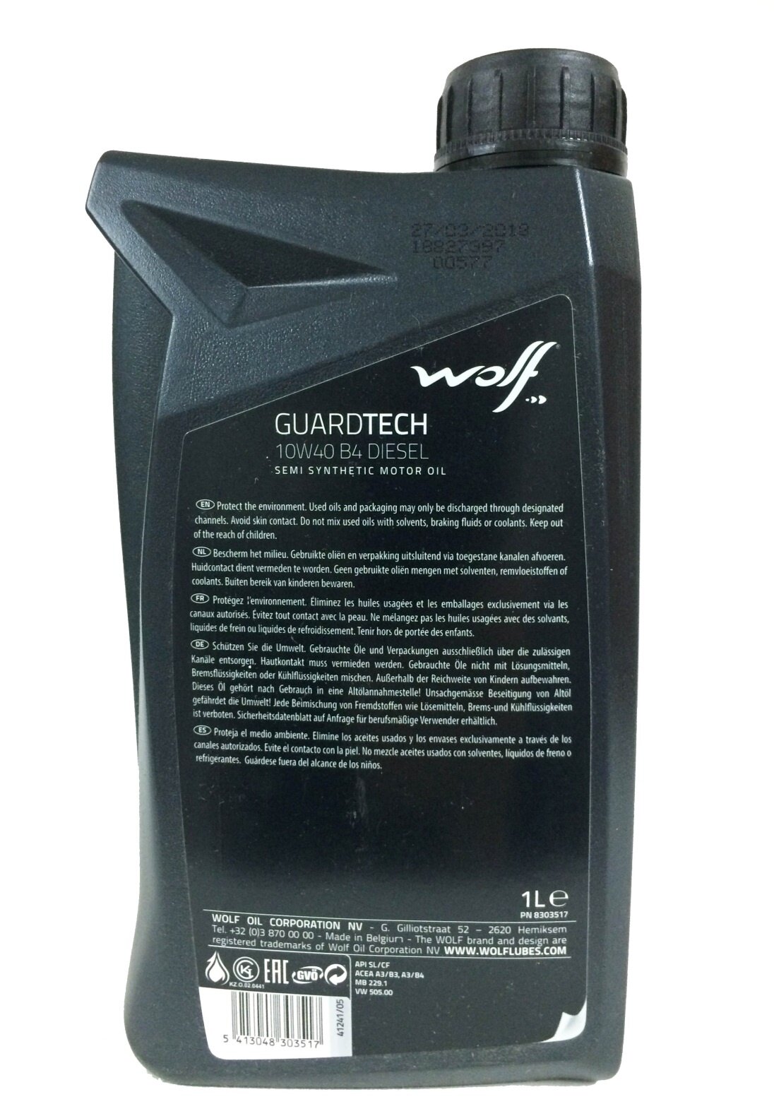Купить Wolf Масло Моторное Wolf Guardtech 10W40 B4 Diesel 1L Полусинтетика Acea A3/B3-10 Acea A3/B4-08 Api Sl/Cf