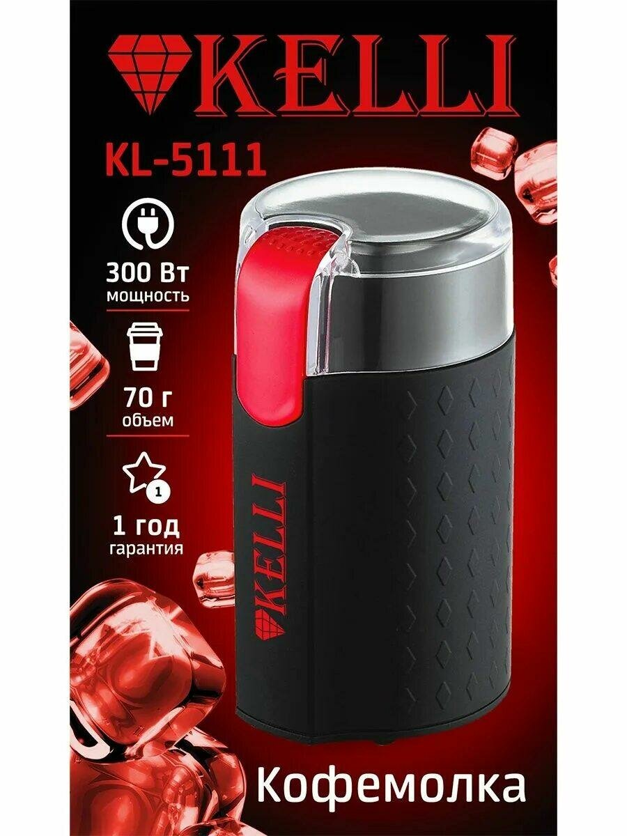 Кофемолка KELLI KL-5111 на 70 гр, 300 Вт, черный