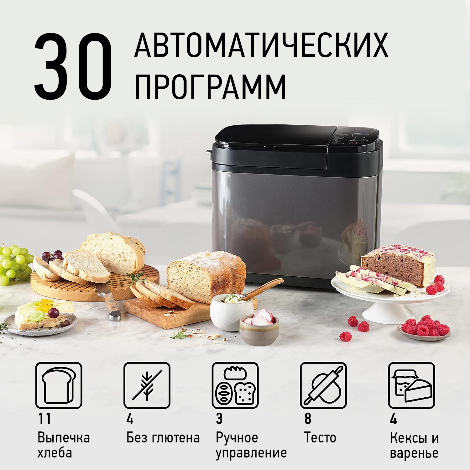 | Количество программ выпечки | 30 |