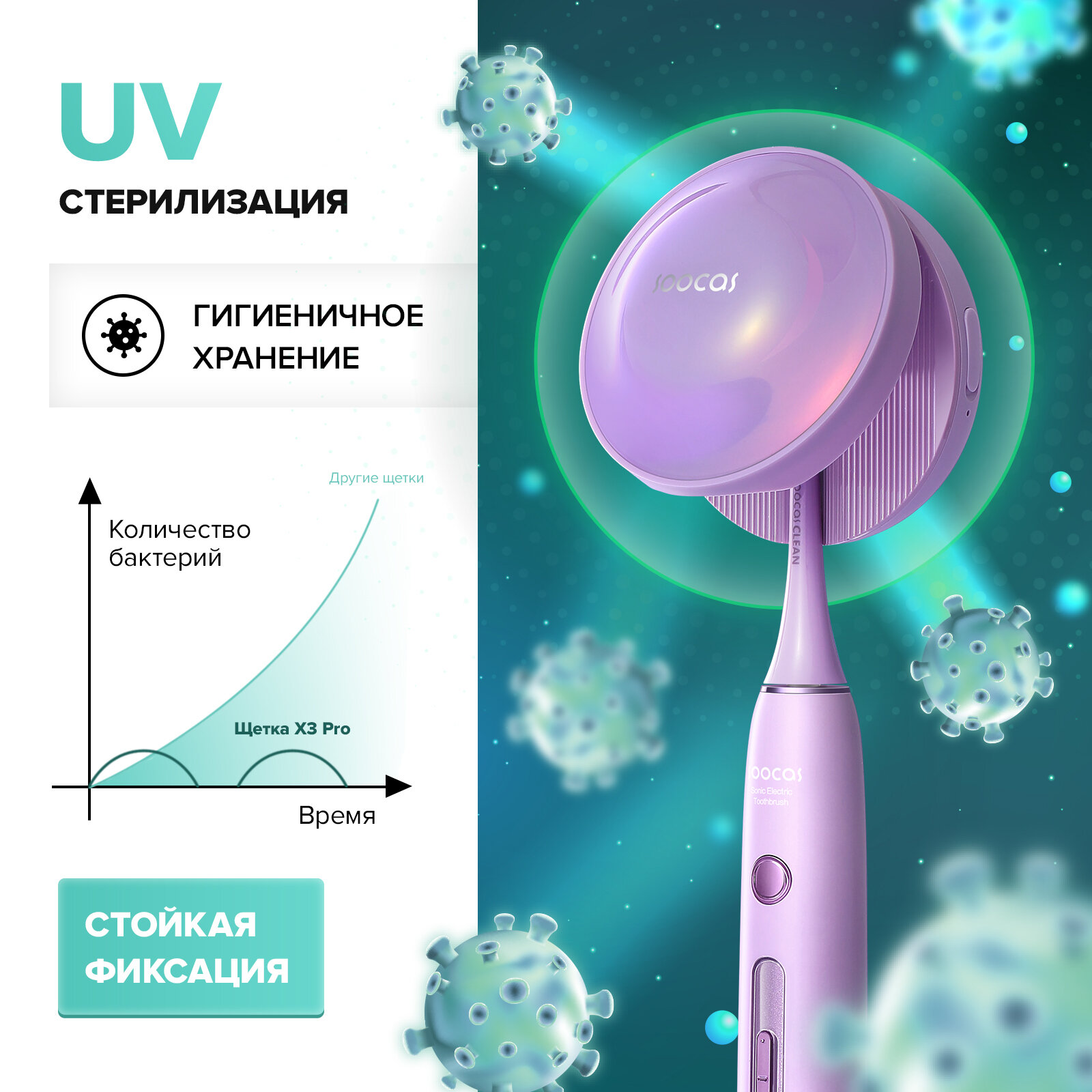 Электрическая зубная щетка Soocas X3 Pro (Global), со стерилизатором, 2 насадки, звуковая, 4 режима очистки, сиреневый