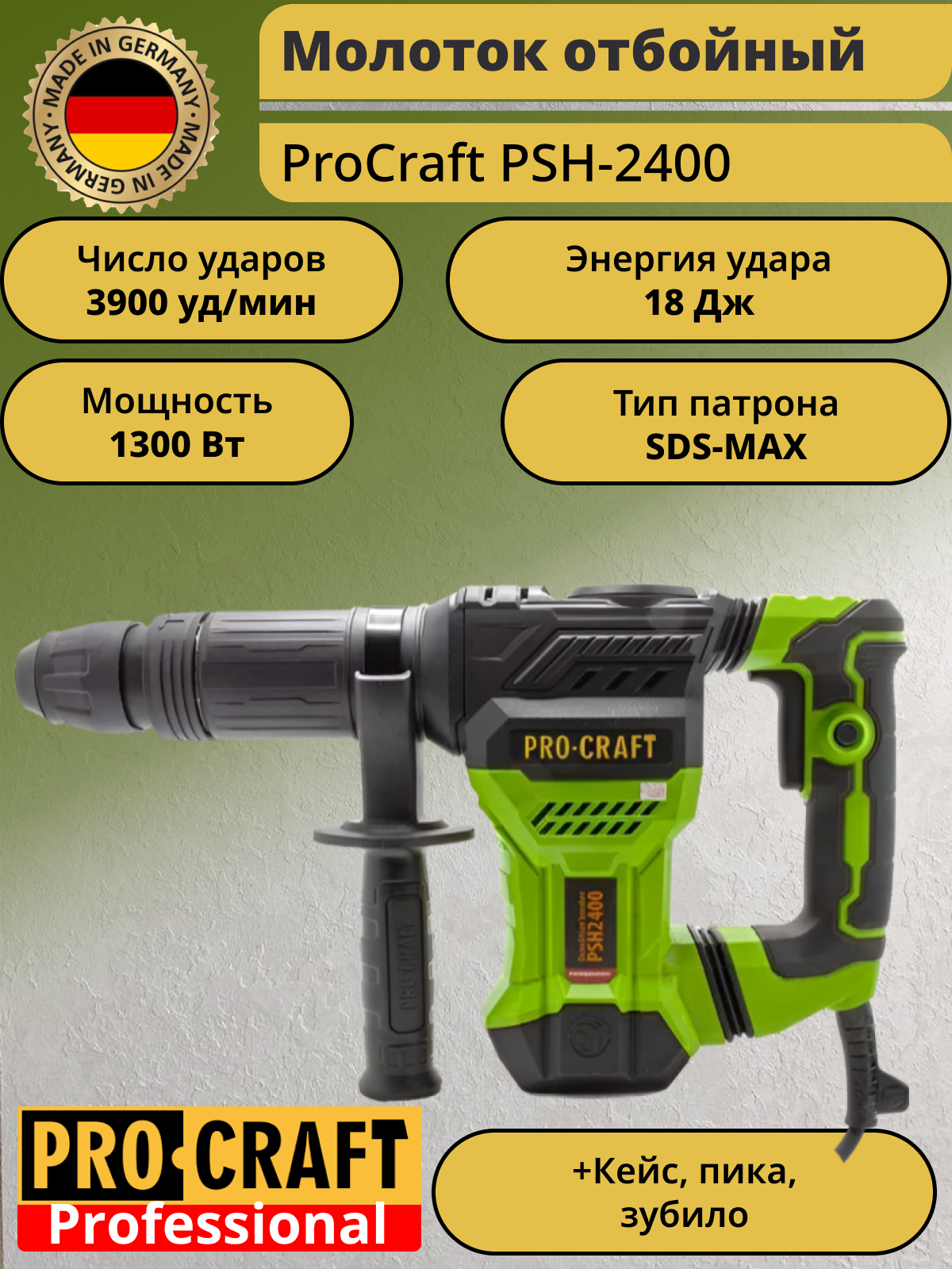 Отбойный молоток Procraft PSH-2400 1300Вт, 3900 уд/мин, 18Дж