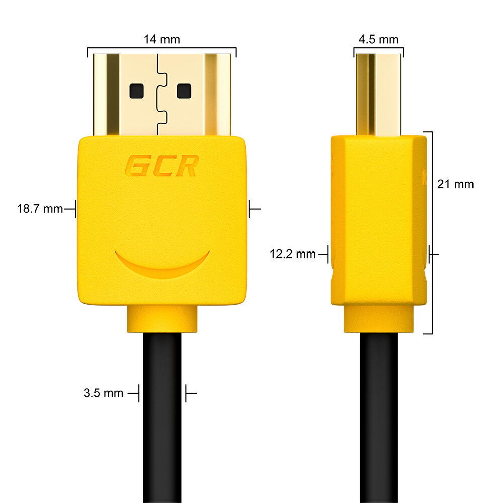 GCR Кабель SLIM 1.0m HDMI 2.0, желтые коннекторы, HDR 4:2:0, Ultra HD, 4K 60 fps 60Hz, 3D, AUDIO, 18.0 Гбит/с