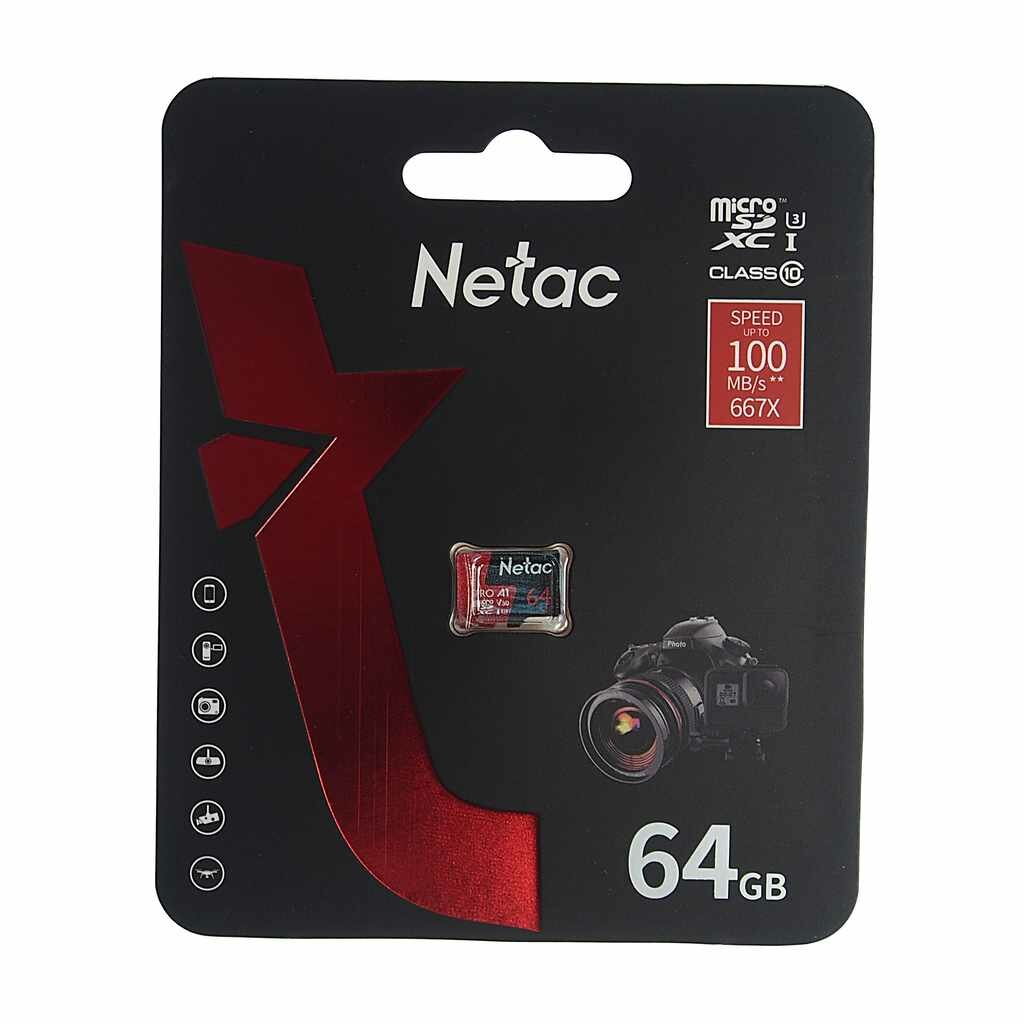Netac (nt02p500pro-064g-s) microSDXC Memory Card 64Gb A1 V30 Uhs-i U1 .