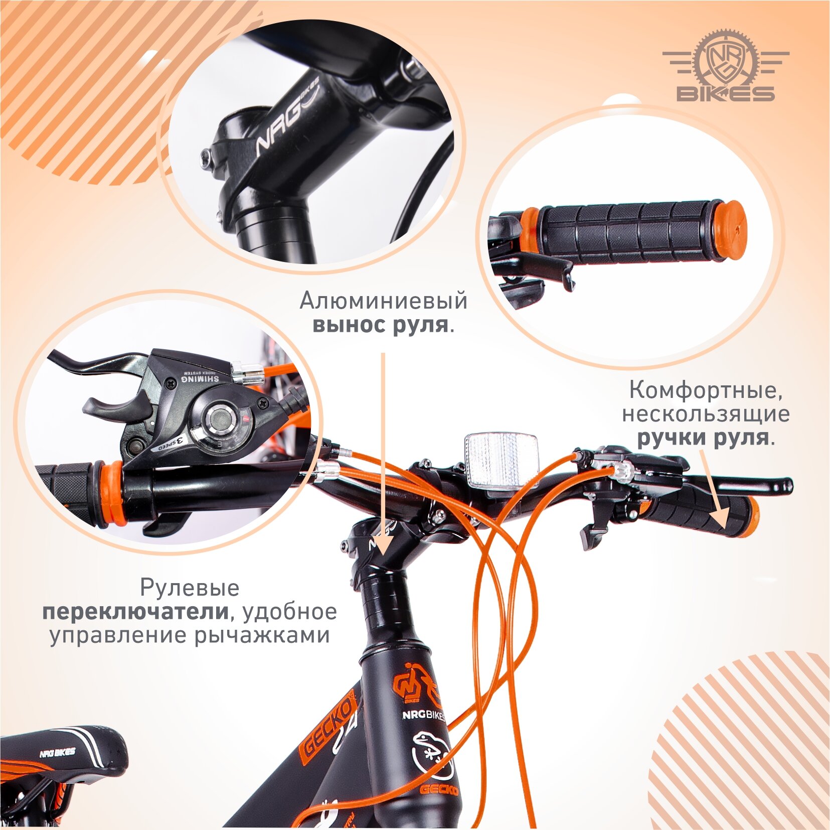Купить Велосипед скоростной горный, подростковый взрослый NRG Bikes GECKO 24", черный, оранжевый