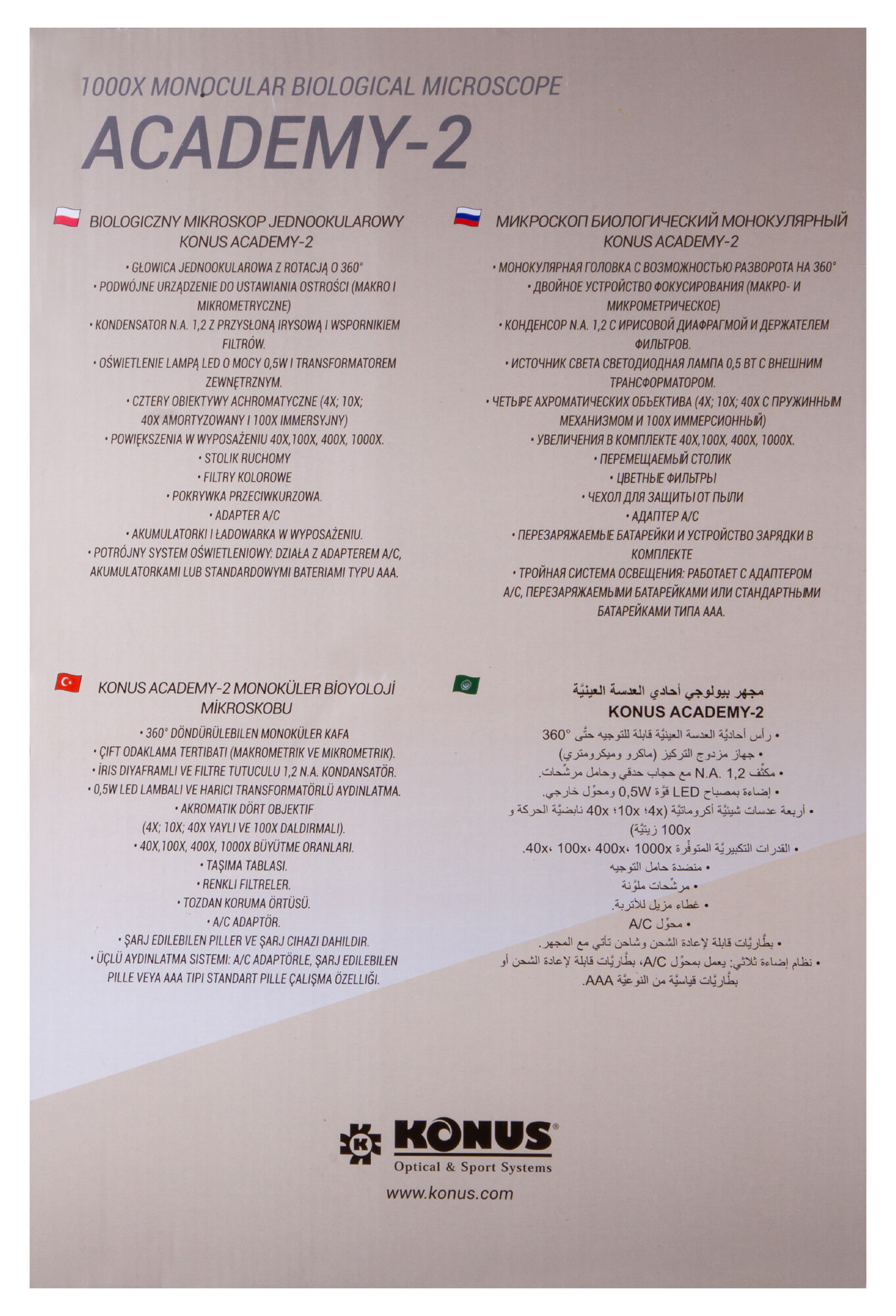 Микроскоп Konus Academy-2 1000X 77062 Konus интересное: