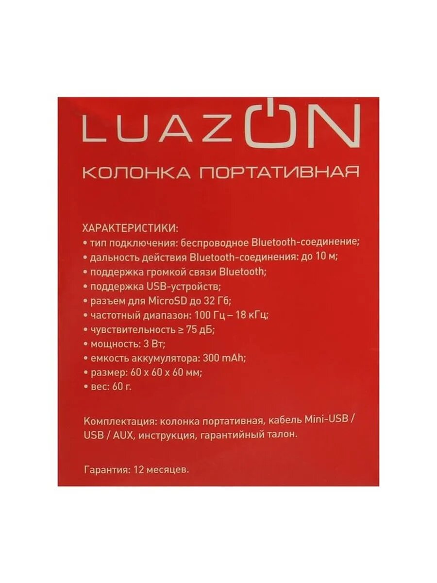 Портативная колонка Luazon LAB-04, с подсветкой, Bluetooth, USB, microSD, microUSB, микс 1884947 интересное: