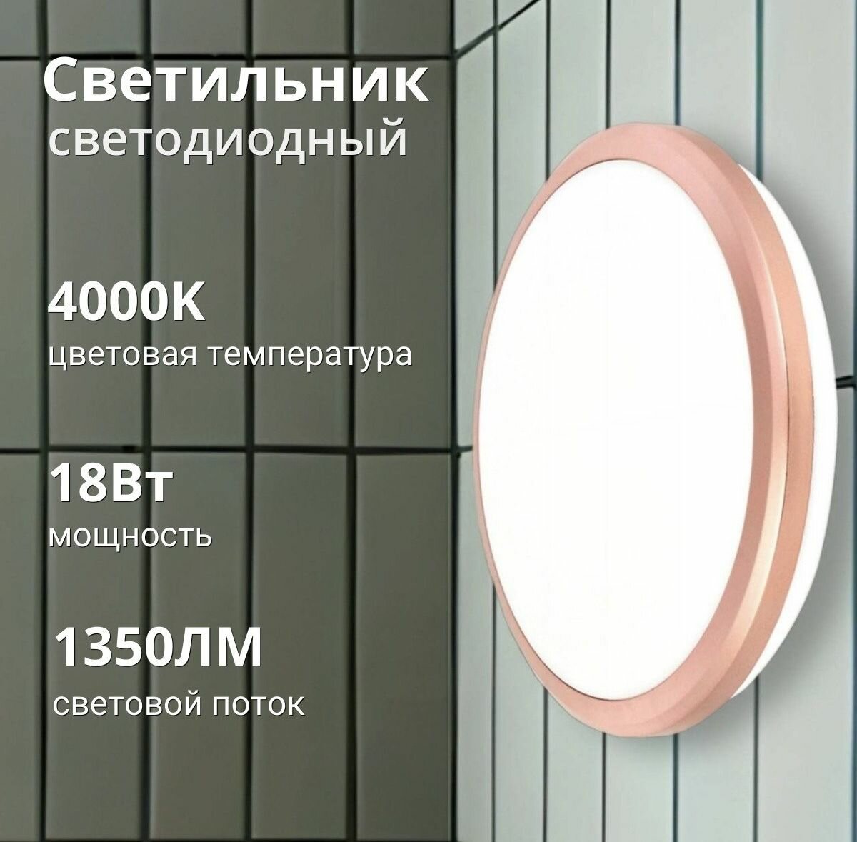 Светильник светодиодный ДПБ 3203 18Вт IP54 4000K круг розовое золото