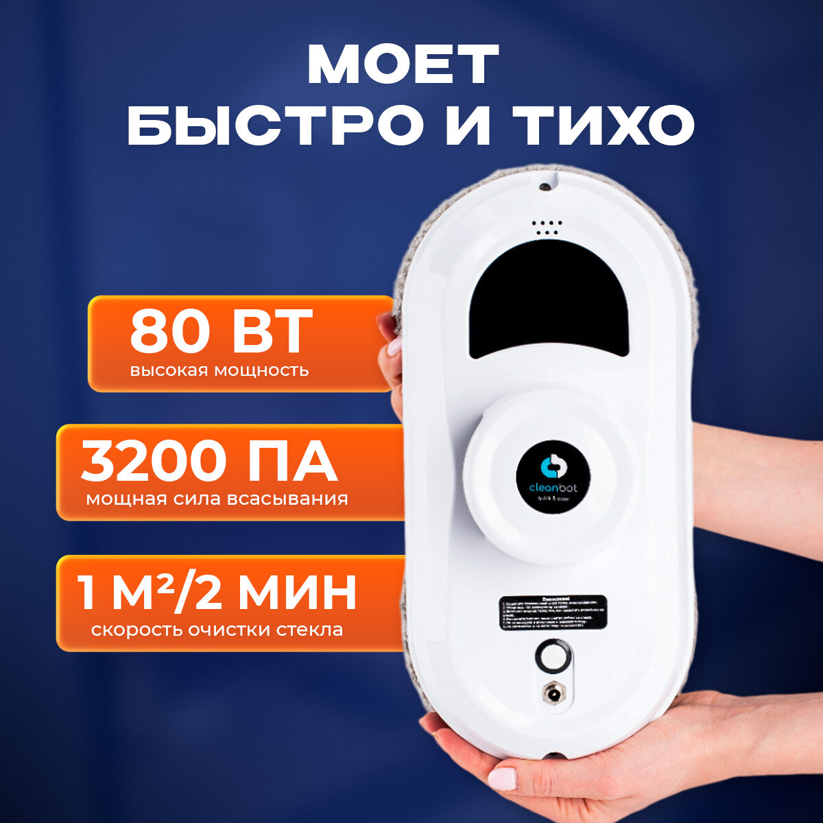 Шустрая, компактная и очень простая в управлении вещь. С мытьем створки справляется всего за пару минут. Сетевой шнур достаточно длинный, есть страховочный трос, так что если и случиться конфуз, робот останется невредим.