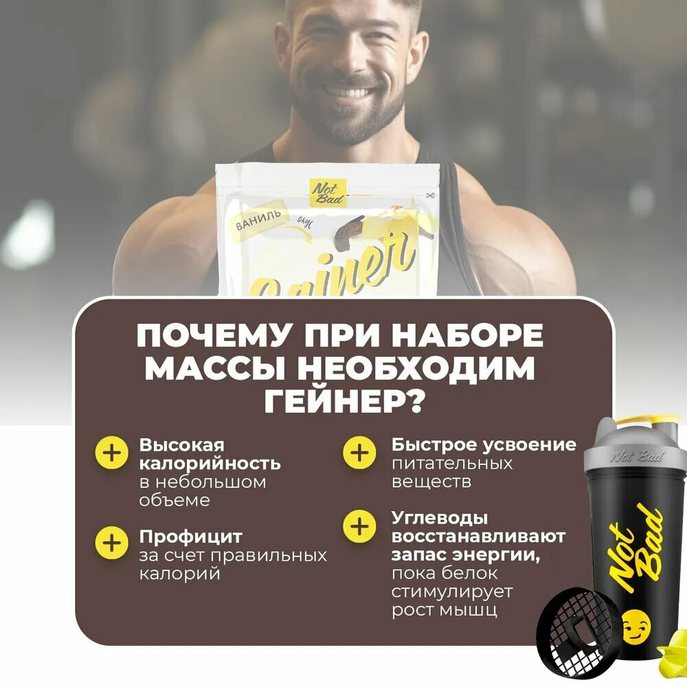 СохранитьГейнер для набора мышечной массы NOTBAD Gainer, Ваниль, 1000 г интересное: