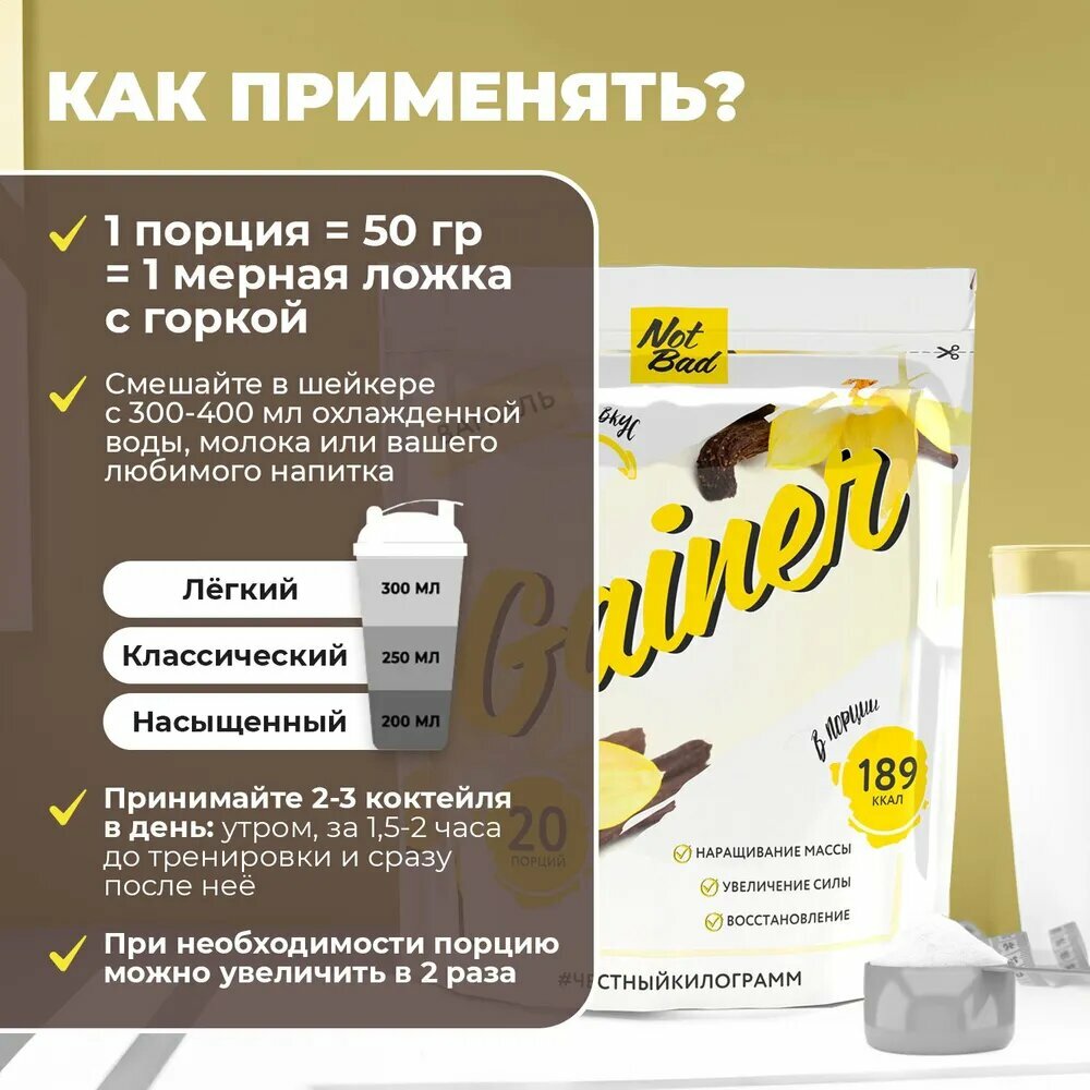NotBad GAINER 1000 gr, 20 порции(й), ваниль