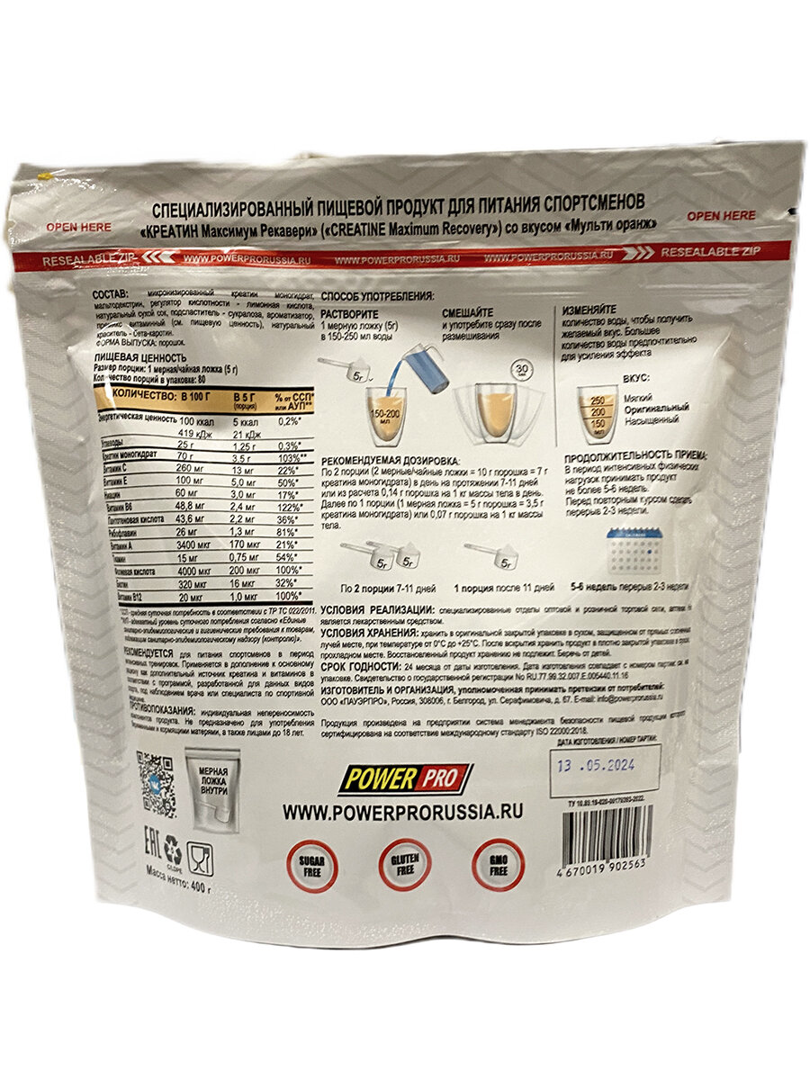 Купить Creatine Maximum Recovery 400 гр (Power Pro) Цитрусовый микс