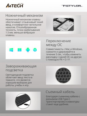 Клавиатура A4TECH Fstyler FKS10, черно-серый