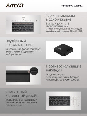 Клавиатура A4Tech "Fstyler", черно-серая, USB, беспроводная, Bluetooth, Radio (FBK11 GREY)