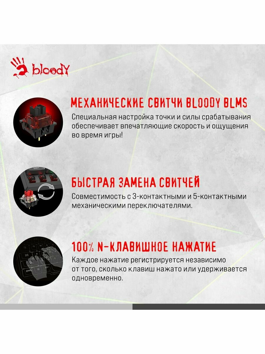 Клавиатура A4Tech Bloody B950, русские и английские буквы, черный (b950)