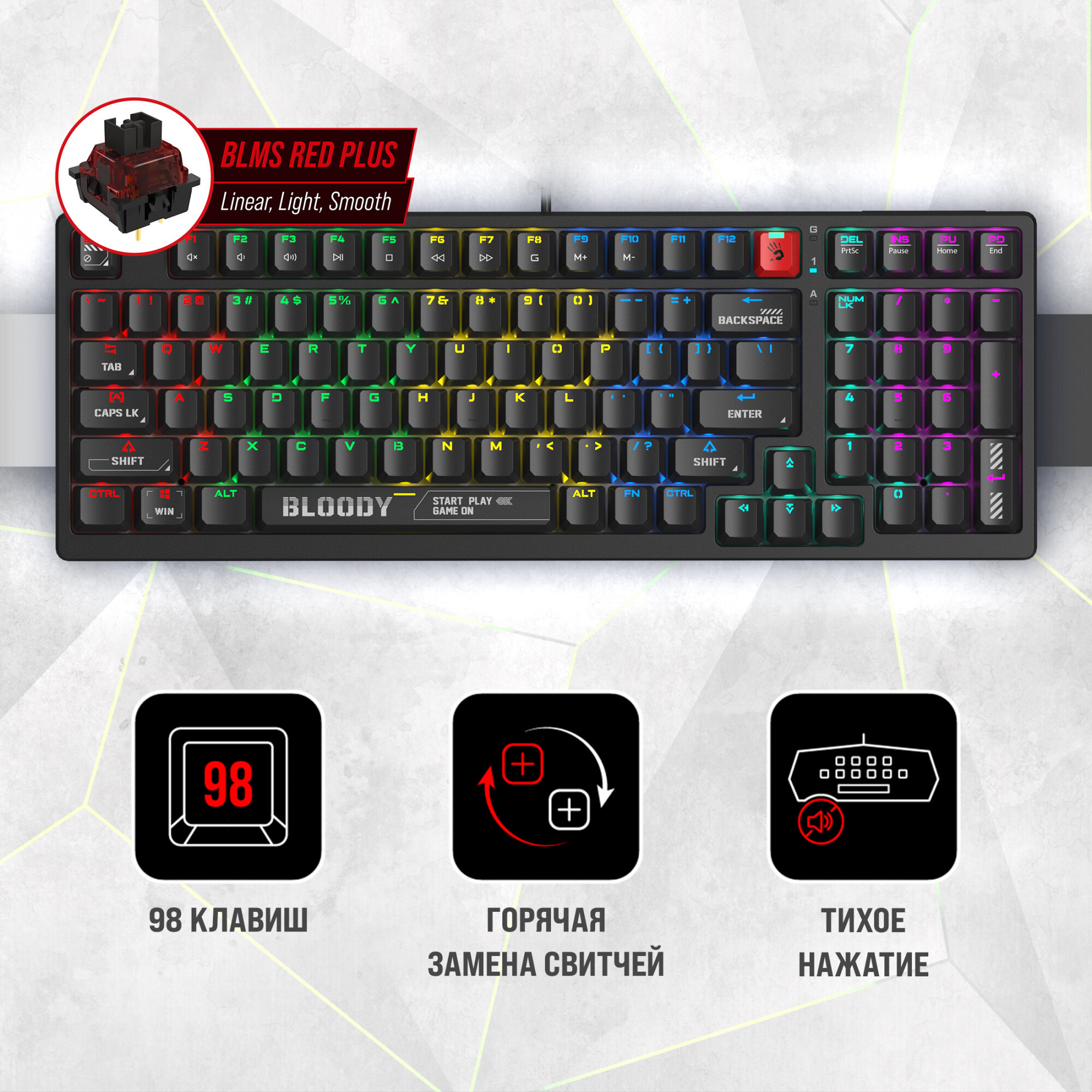 Клавиатура A4Tech Bloody S98, механическая, USB, RGB