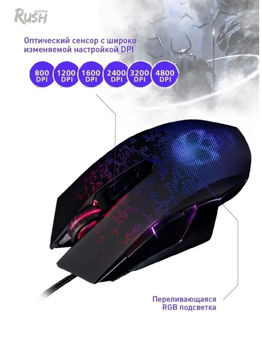 Мышь игровая проводная RUSH Nox 734G-K, Smartbuy
