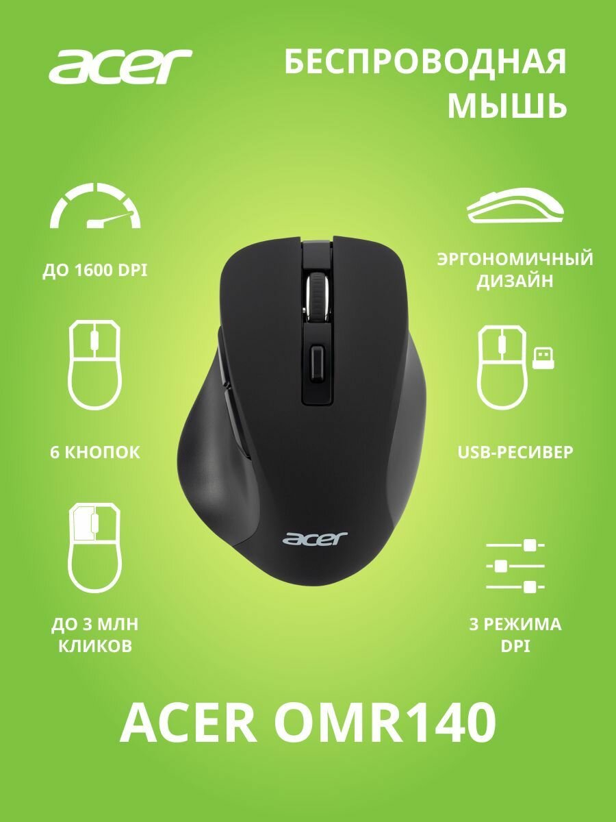 Купить Беспроводная мышь Acer OMR140 1600dpi, радиоканал, 64 г, черный ZL.MCEEE.00G