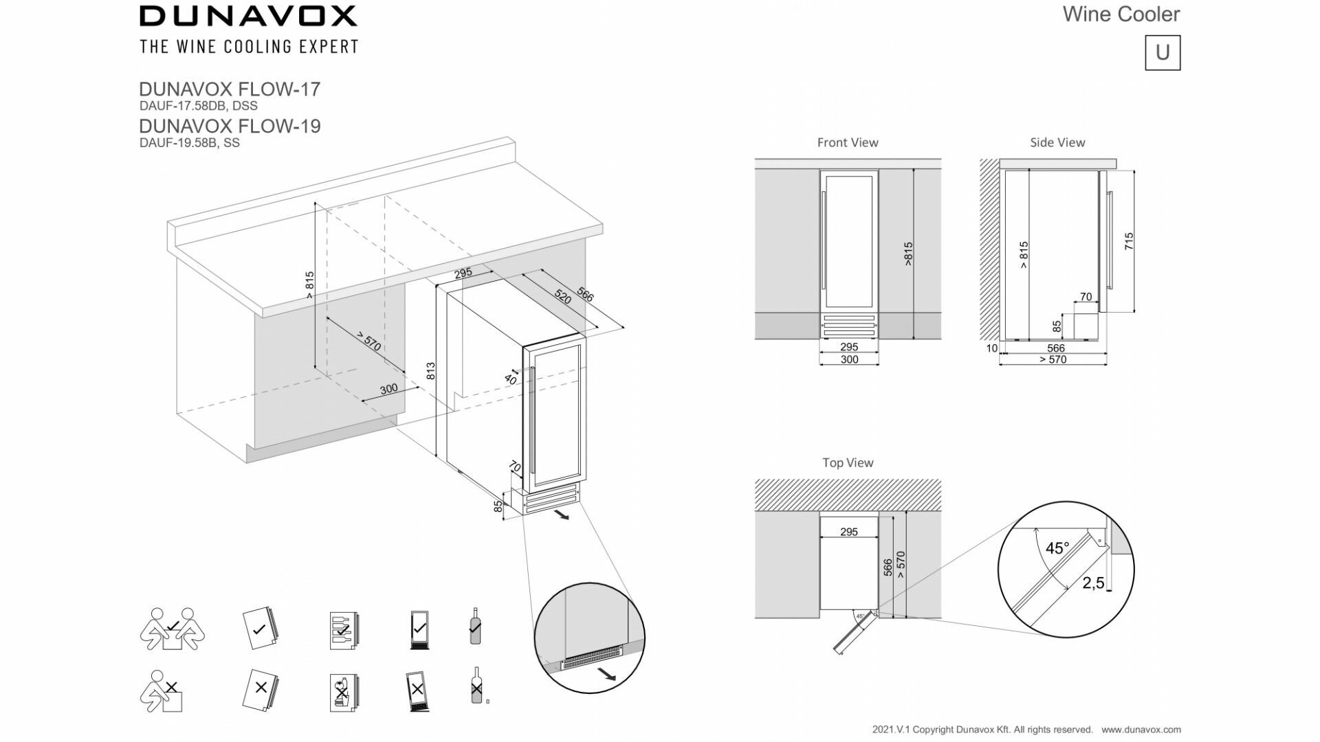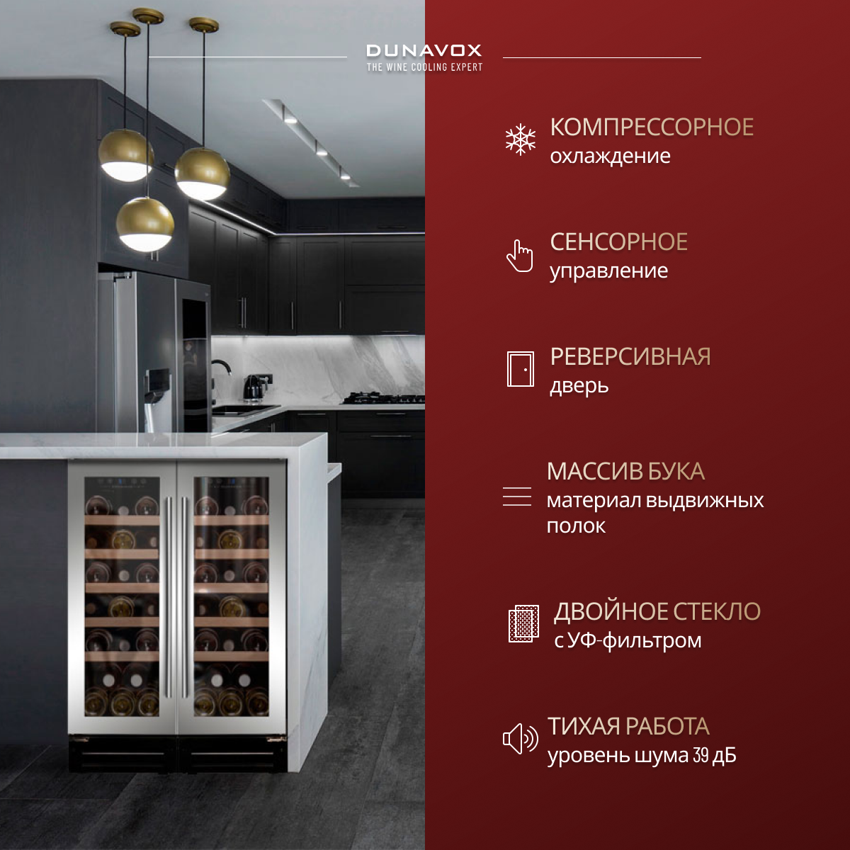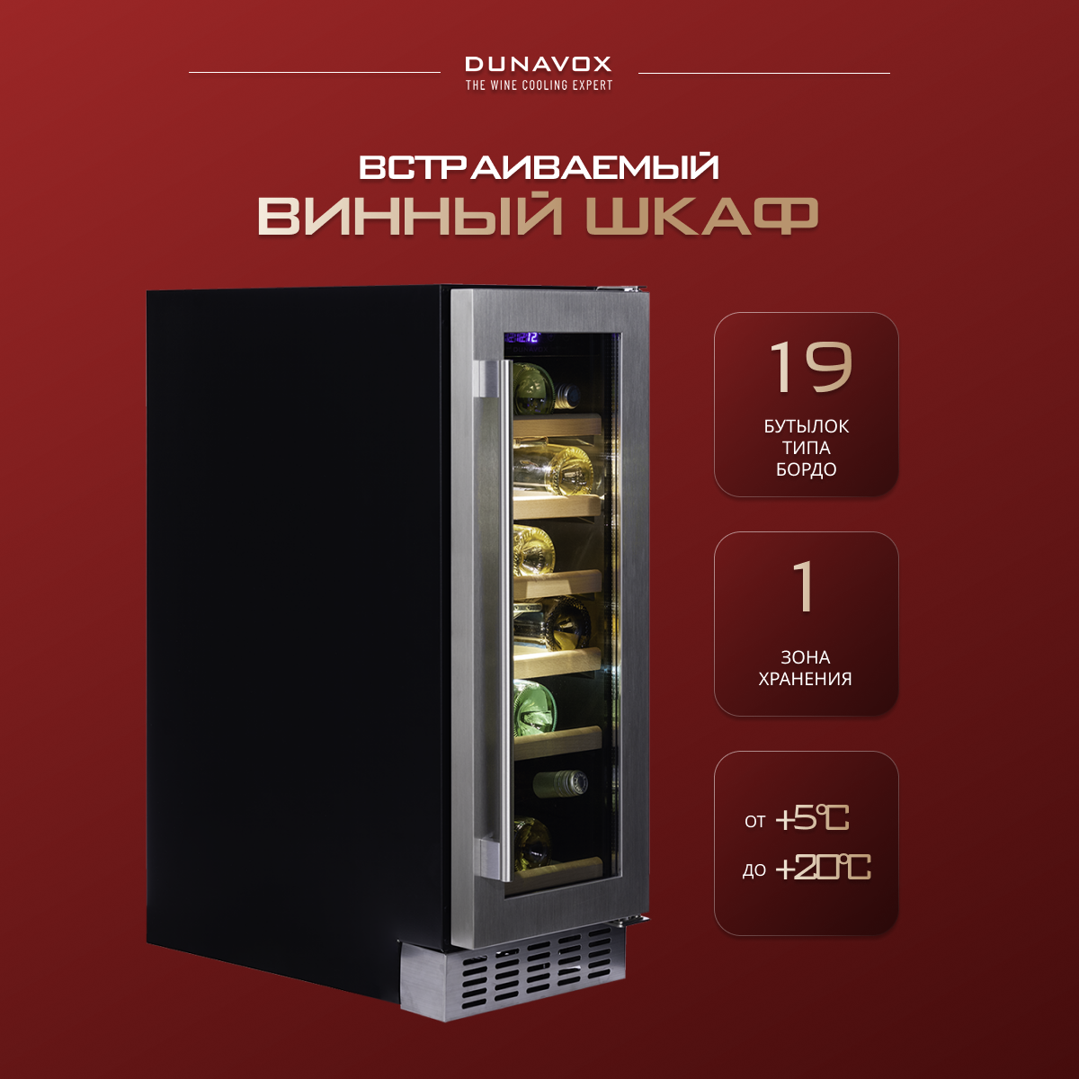 Винный шкаф Dunavox DAUF-19.58SS компрессорный встраиваемый под столешницу на 19 бут интересное: