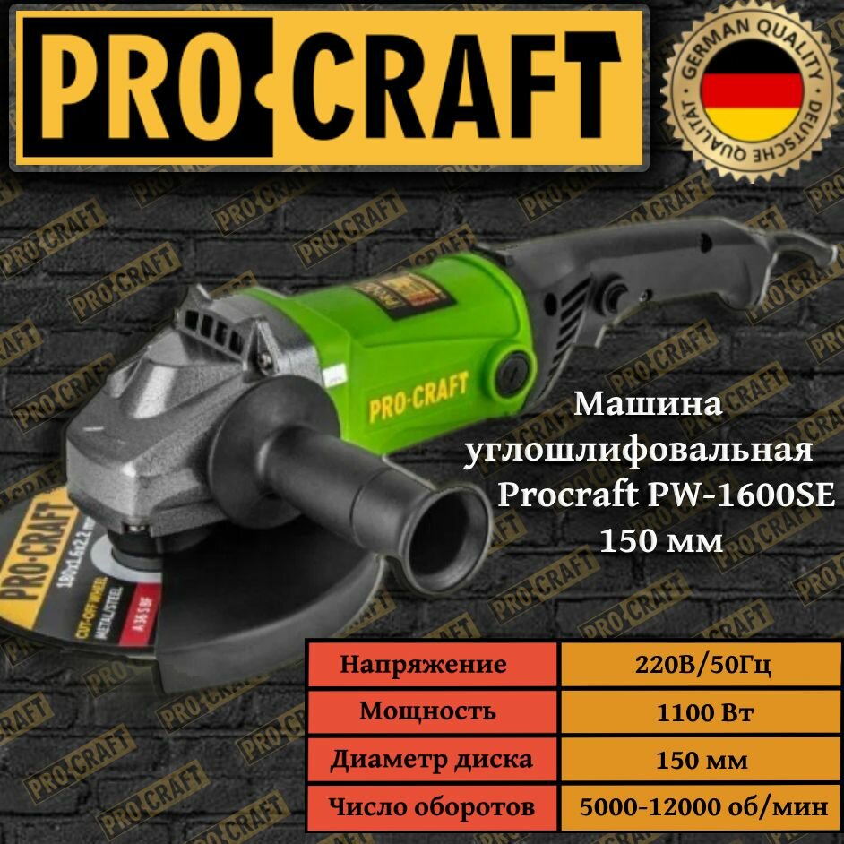 Ушм болгарка ProCraft PW1600SE, 150мм, 1100Вт, регулировка оборотов