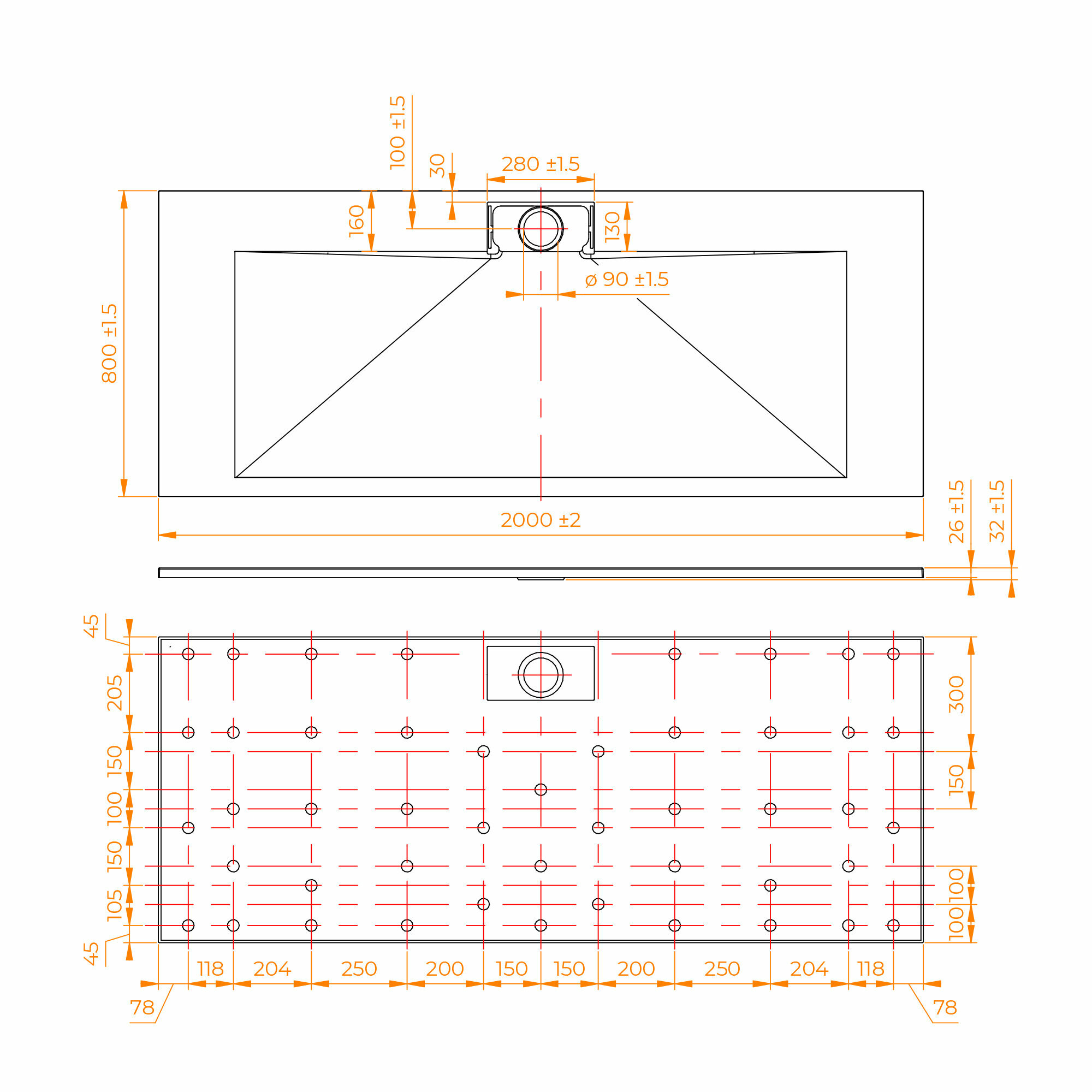 Душевой поддон RGW 90 х 200 см TKS-209Gr серый цвет, прямоугольный 90 мм (d слива) (553802920-12)