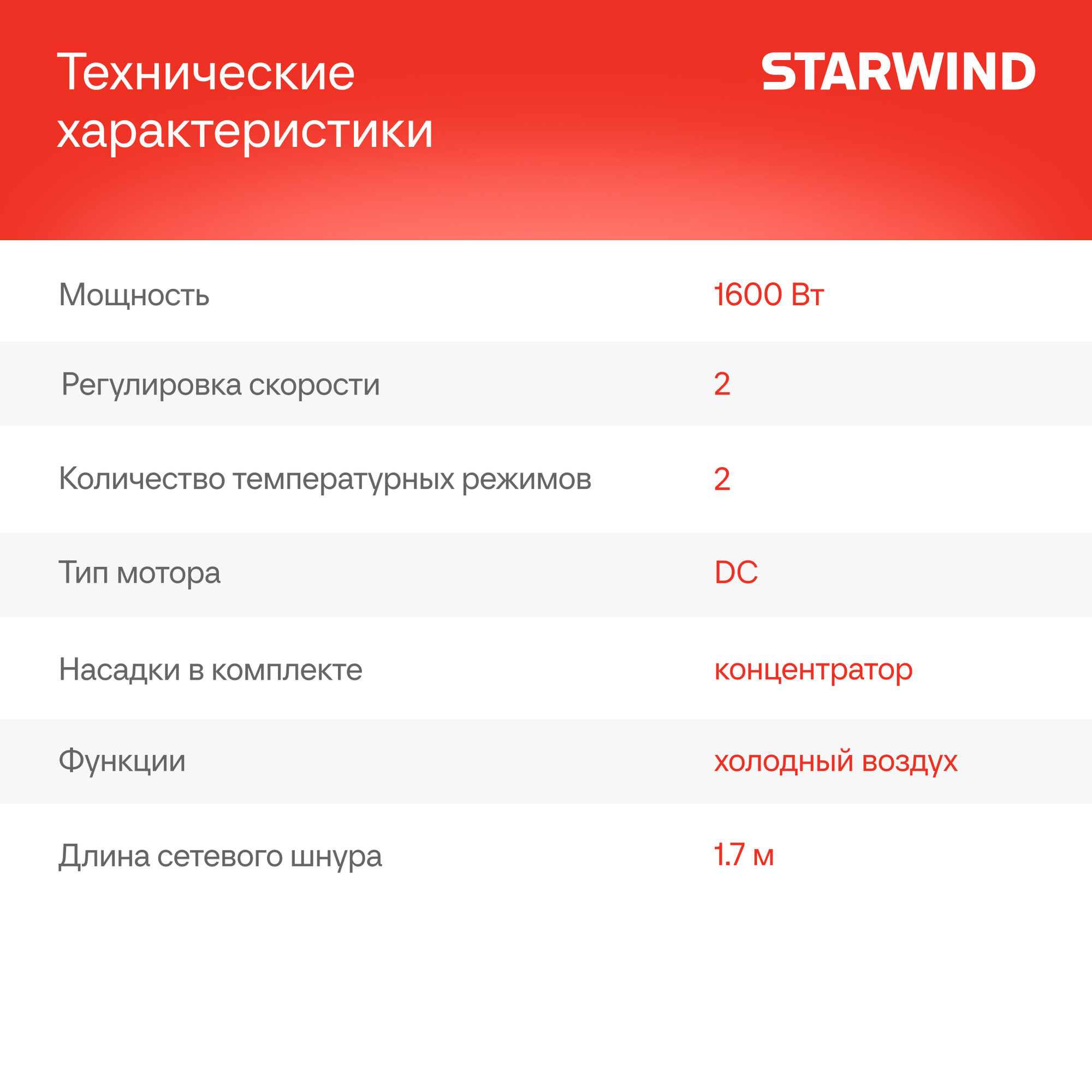 Фен Starwind SHD 6055 1600Вт черный интересное: