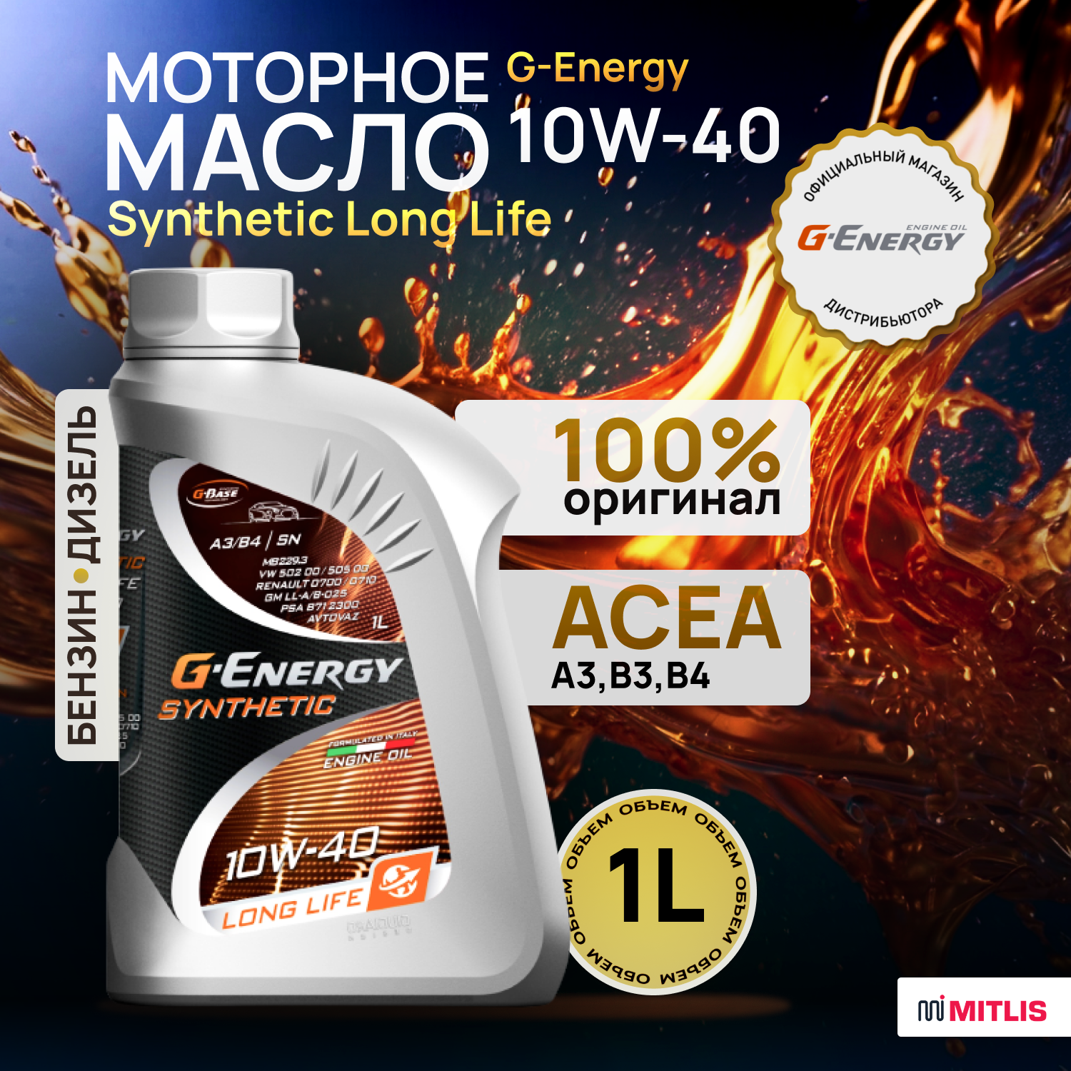 G-Energy Масло Моторное 10W-40 Синт. Synthetic Long Life Api Sn/Cf, Acea A3/B4 (1Л) (G-En