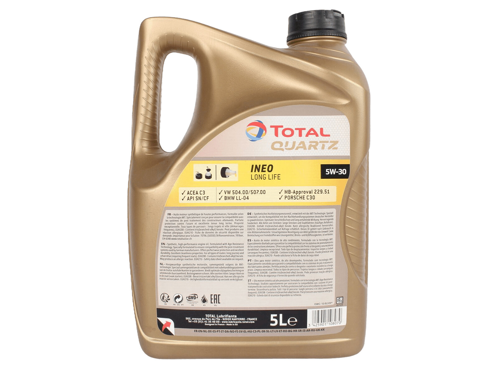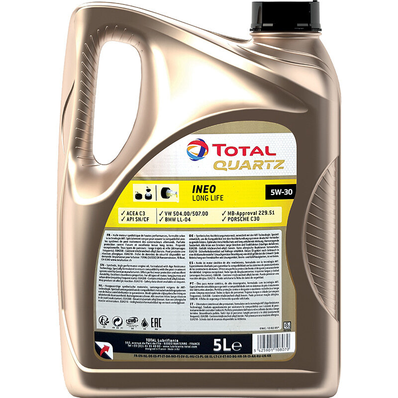 TOTALENERGIES 213819 Масо моторное синтетическое 5 - QUARTZ INEO LONG LIFE 5W-30 API SN/CF, ACEA C3, VW 504.00/507.00, MB 229.51, BMW Longlife-04, Porsche C30
