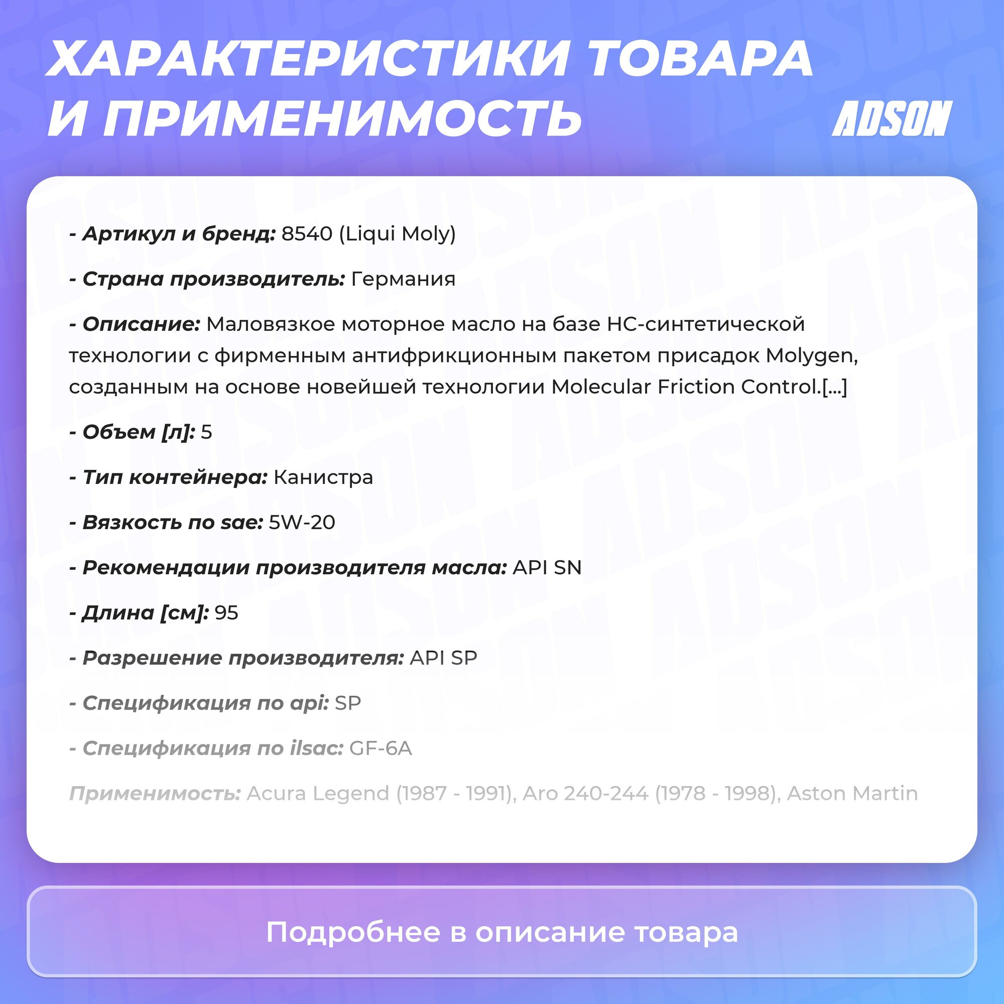 Ниже Вы можете прочитать отзывы на HC-синтетическое моторное масло LIQUI MOLY Molygen New Generation 5W-20, 5 л, 1 шт., ознакомится с подробными характеристиками, посмотреть интересные обзоры и фотографии на HC-синтетическое моторное масло LIQUI MOLY Molygen New Generation 5W-20, 5 л, 1 шт..