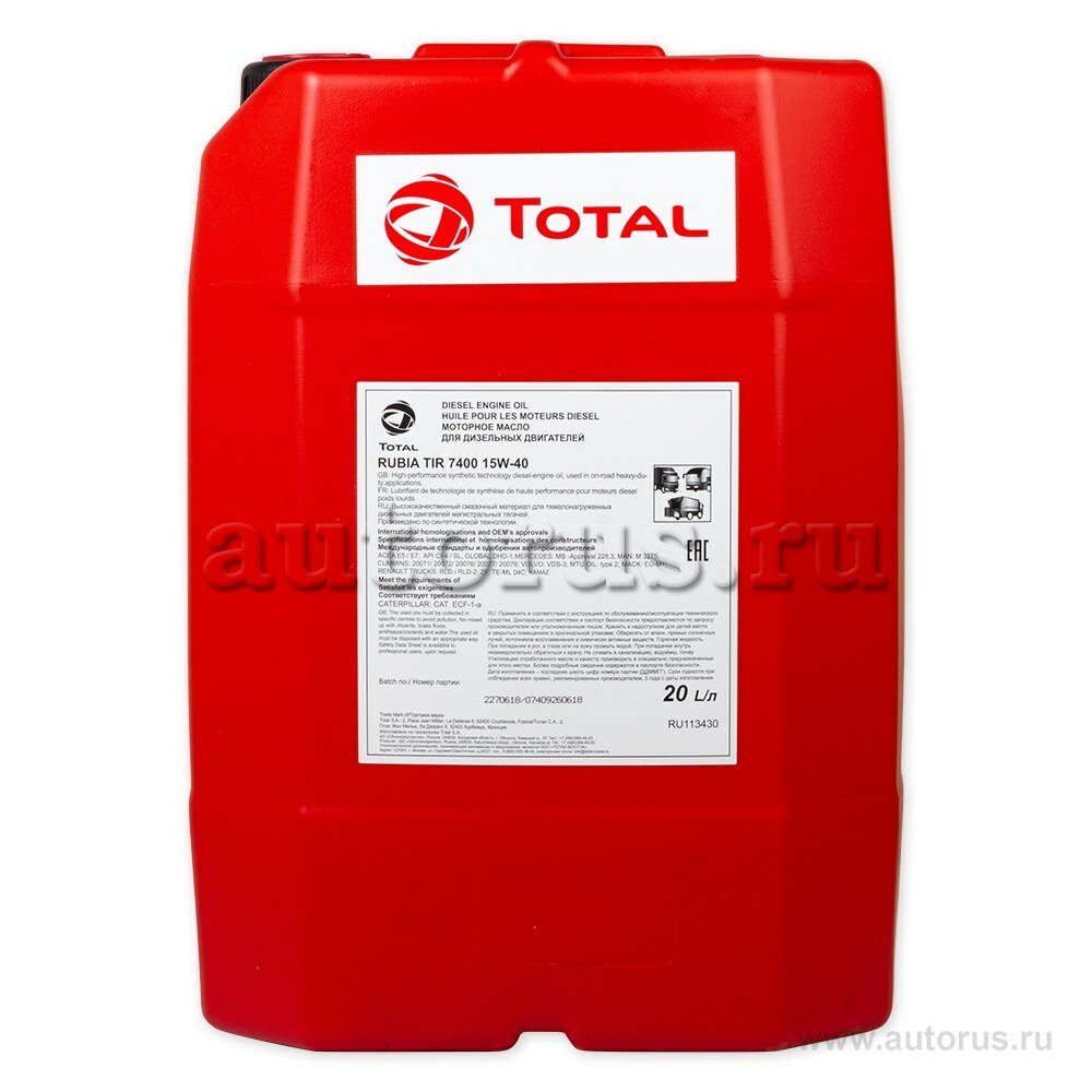 Ниже Вы можете прочитать отзывы на TOTALENERGIES 113430 Моторное масло RUBIA TIR 7400 15W40 20L, ознакомится с подробными характеристиками, посмотреть интересные обзоры и фотографии на TOTALENERGIES 113430 Моторное масло RUBIA TIR 7400 15W40 20L.