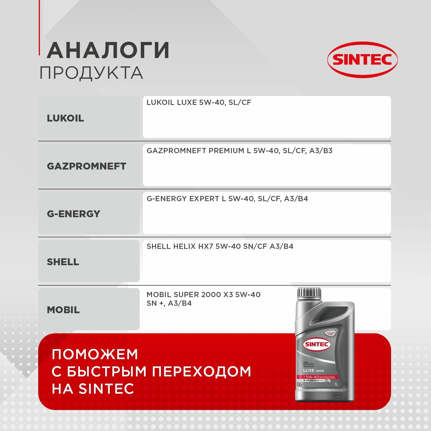 Купить SINTEC Масло Моторное Sintec Luxe 5000 5W-40 Api Sl/Cf 1Л