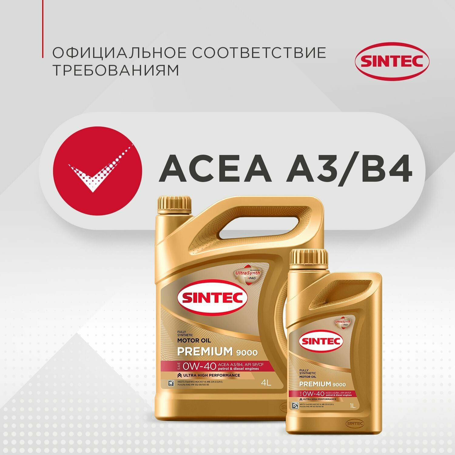 Купить SINTEC Масло Моторное Синтетика 4Л Масло Sintec Premium 9000 0W-40 A3/B4 Sp/Cf 4Л