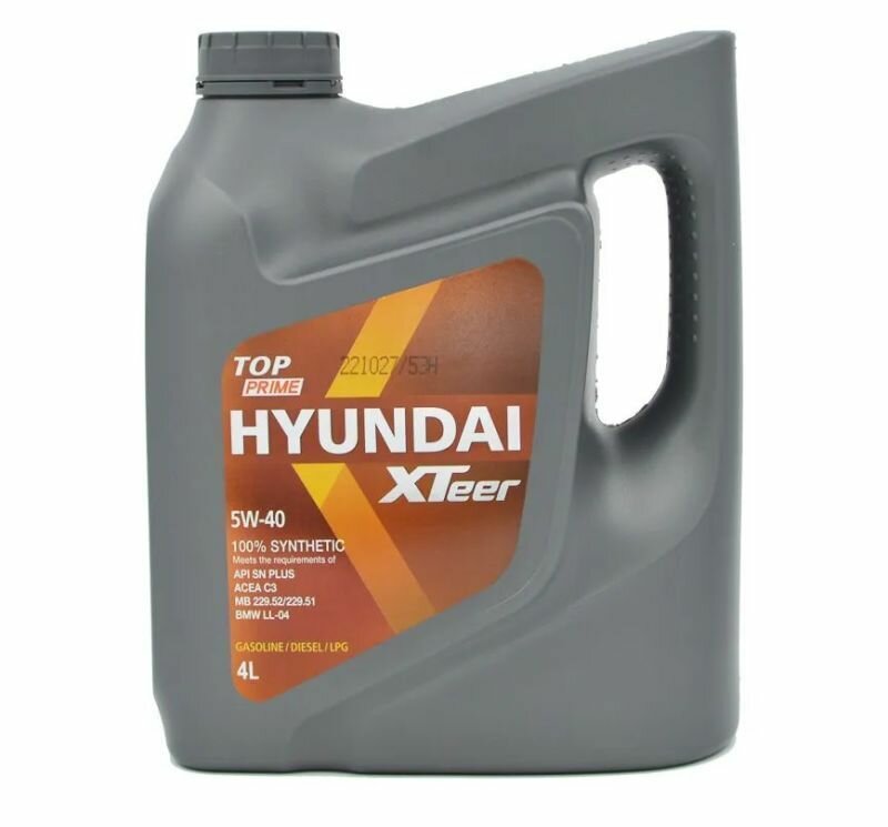 HYUNDAI-XTEER 1011116 Масо моторное синтетическое 1 - XTeer TOP Prime 5W40 API SN,CF, ACEA C3 A3,B3,B4 MB-Approval 229.31,229.51 BMW Longlife - 04, Poreche A40 VW 502 00,505 00,505 01