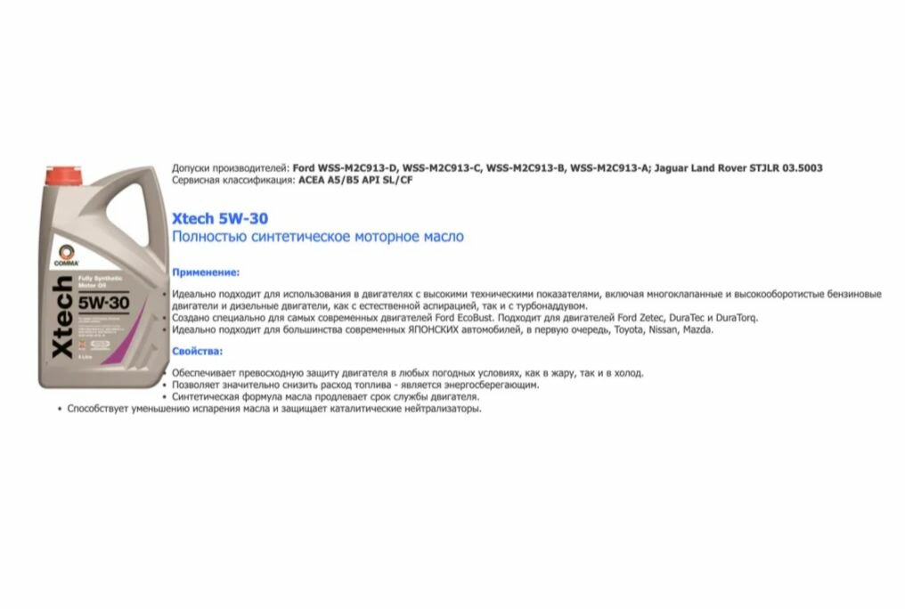 comma 5w30 xtech (1l)_масло мот.! син.\ acea a5/b5, api sl/cf, ford wss-m2c913-c/b/a/d