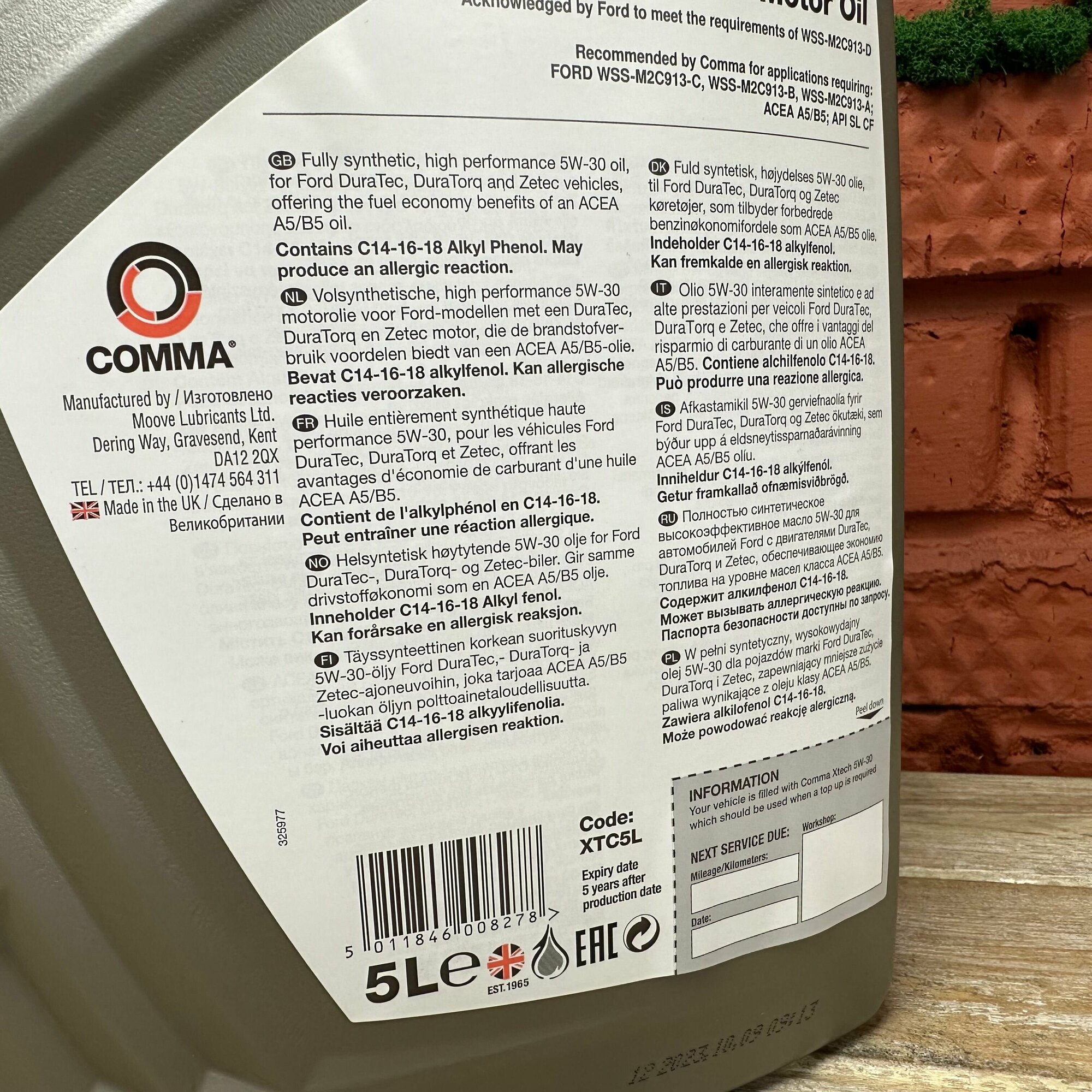 COMMA XTC5L COMMA 5W30 XTECH (5L)_масло мот.! син.\ ACEA A5/B5, API SL/CF, FORD WSS-M2C913-C/B/A/D 1шт