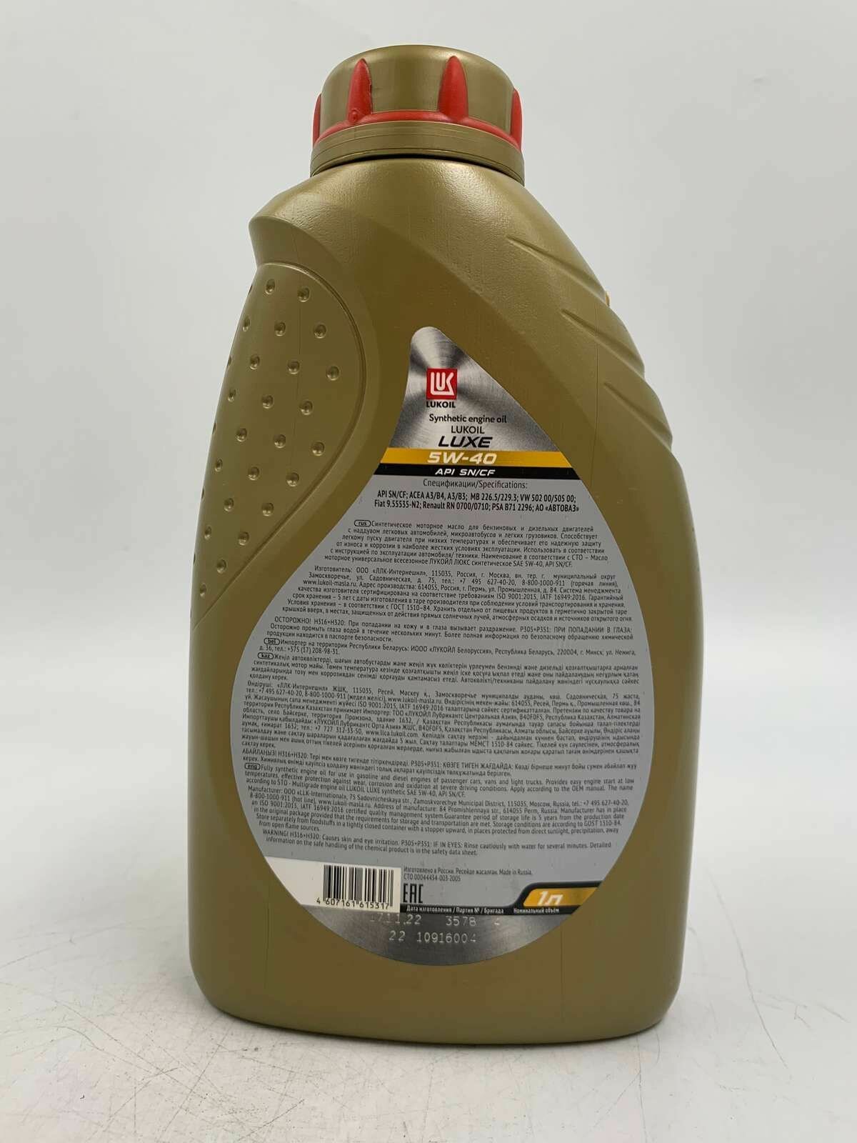 Масло моторное лукойл люкс sn/cf 5w-40 синтетическое 1 л 207464