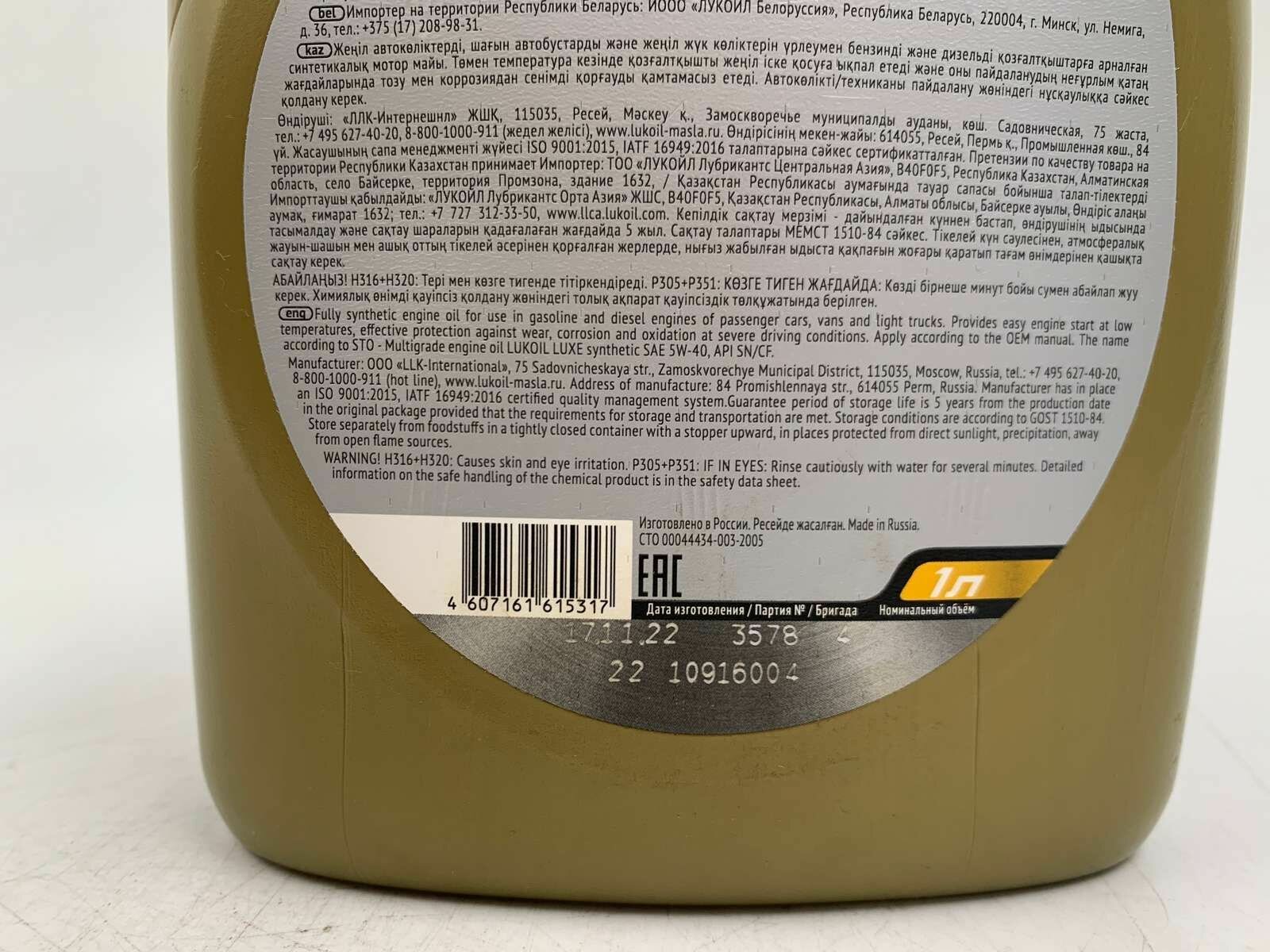 LUKOIL Люкс 5w40 Масло Моторное Синтетическое 1л. Лукойл В Подольске