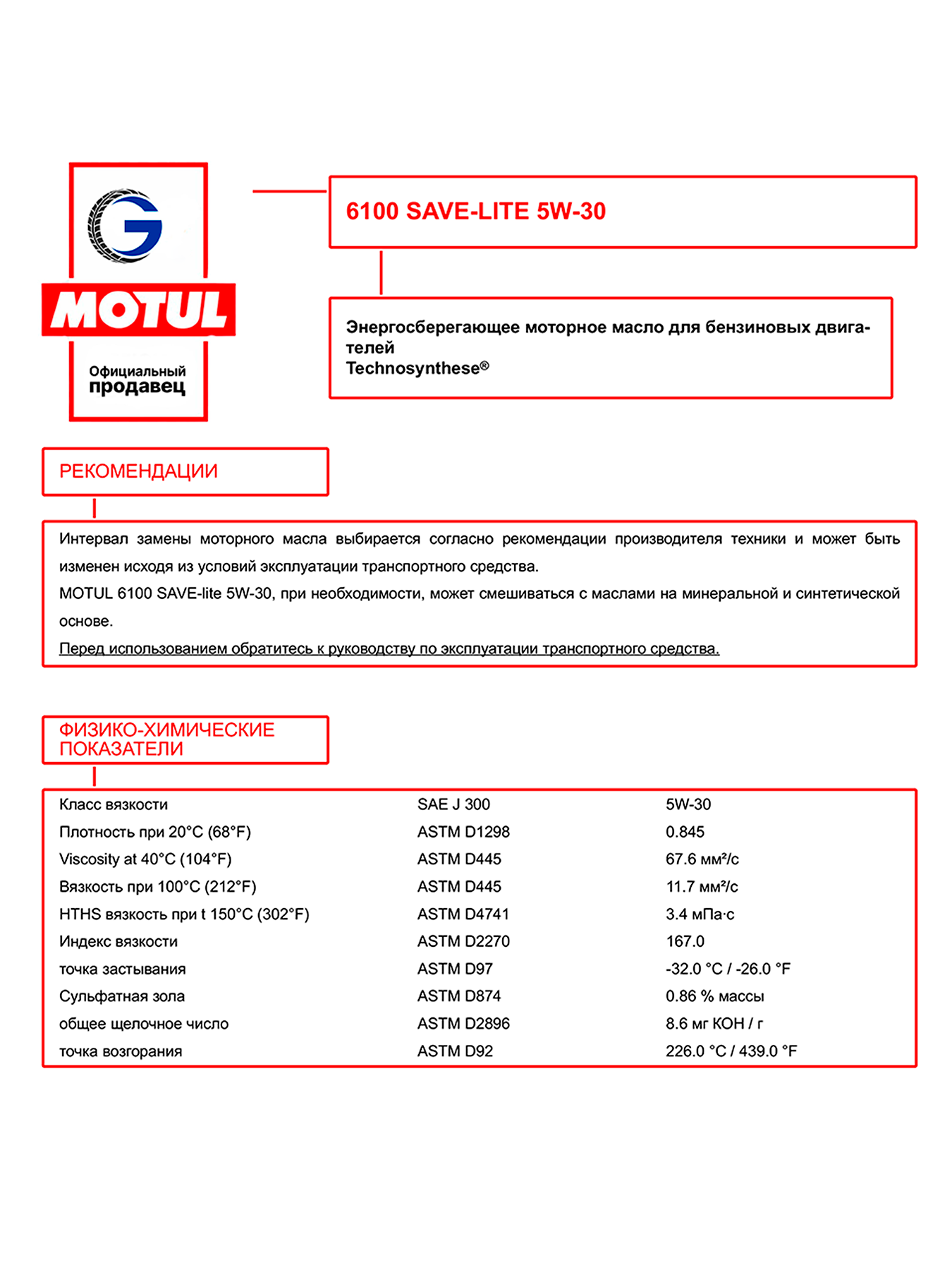 СохранитьMOTUL 107956 MOTUL 6100 SAVE-LITE 5W30 (1.) интересное: