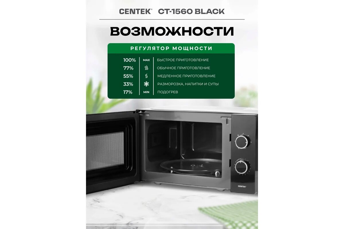 Микроволновая печь Centek Ct-1560, 700 Вт, 20 л, 5 режимов, черная Centek 7084245 .