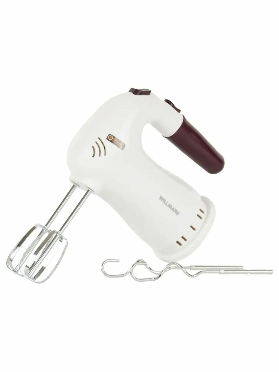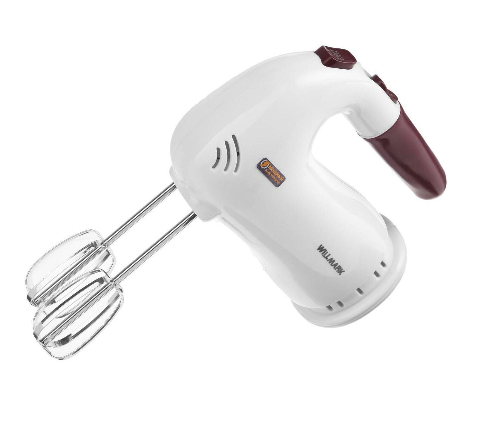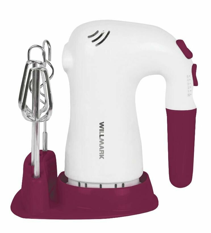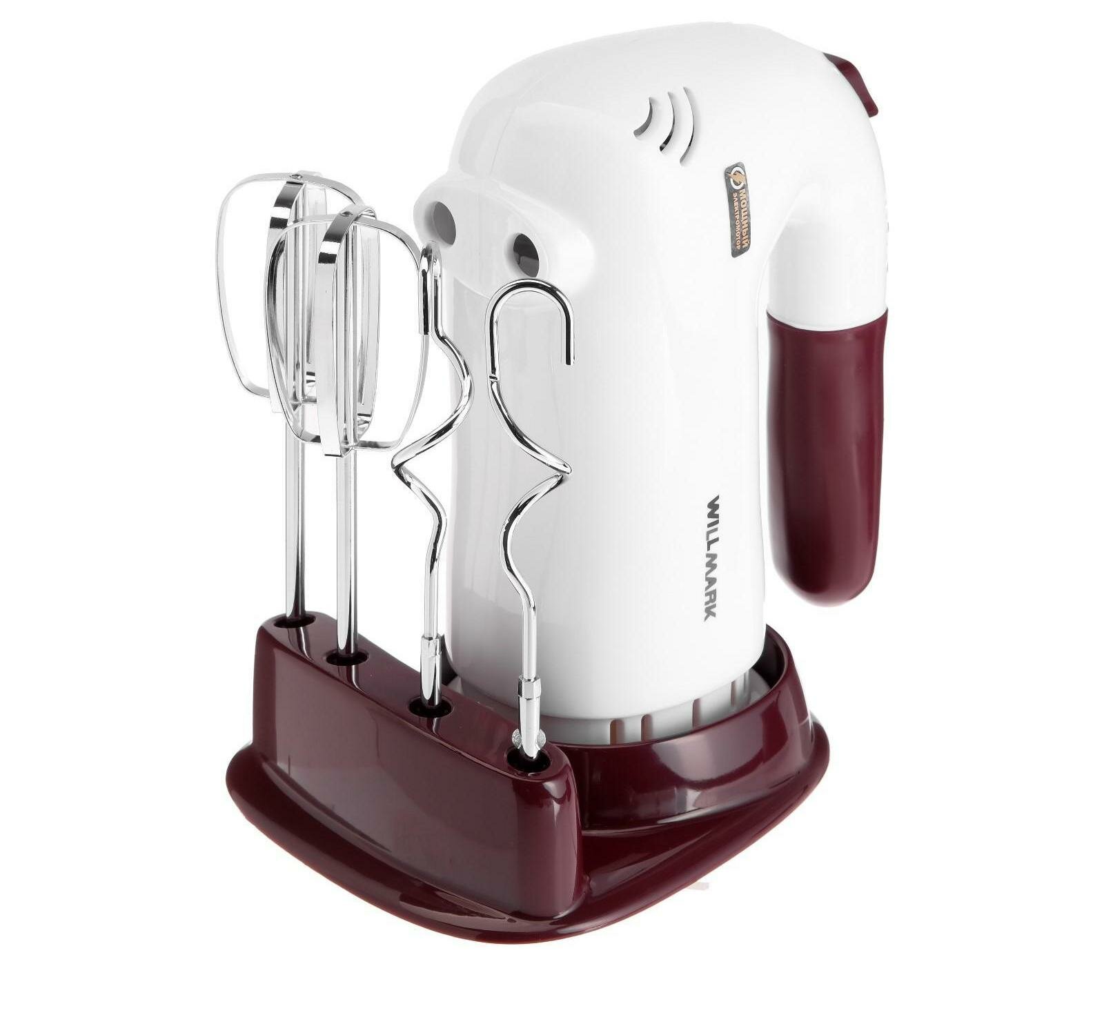 Купить Willmark Миксер WILLMARK WHM-6023ST, ручной, 400 Вт, 5 скоростей, 2 насадки, подставка бордо
