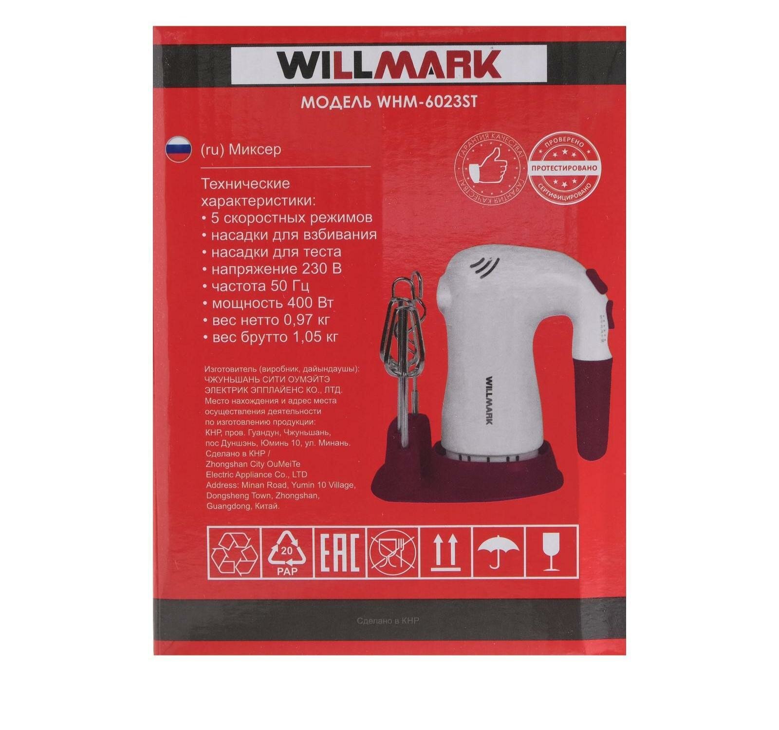 Ниже Вы можете прочитать отзывы на Willmark Миксер WILLMARK WHM-6023ST, ручной, 400 Вт, 5 скоростей, 2 насадки, подставка бордо, ознакомится с подробными характеристиками, посмотреть интересные обзоры и фотографии на Willmark Миксер WILLMARK WHM-6023ST, ручной, 400 Вт, 5 скоростей, 2 насадки, подставка бордо.