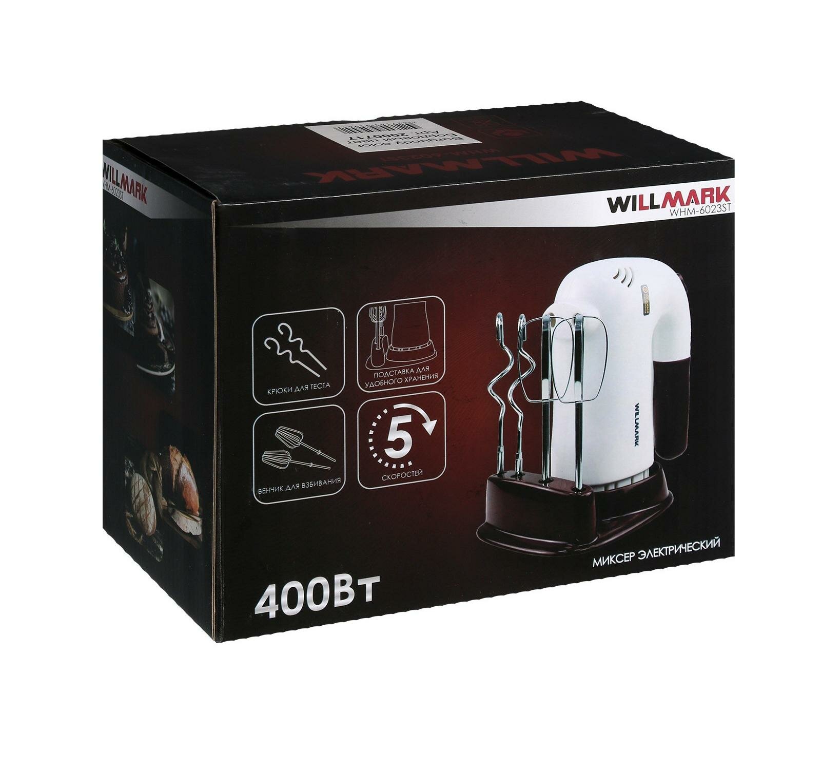 Миксер WILLMARK WHM-6023ST (400Вт, 5 скоростей,2 вида насадок, подставка)
