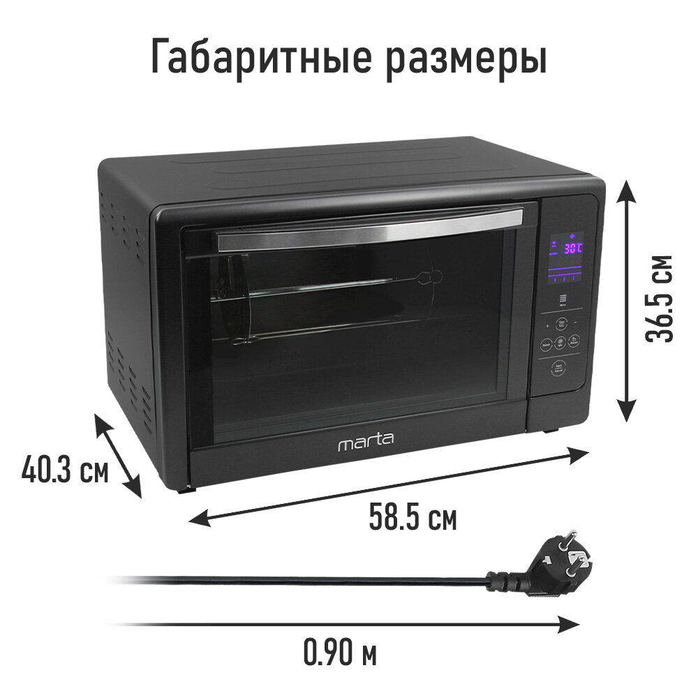 MARTA MT-EO4287B черный жемчуг духовой шкаф (Мини-печь) 50л (Сенс+8 реж+Конвек+Шашл+Вертел+Эмаль)