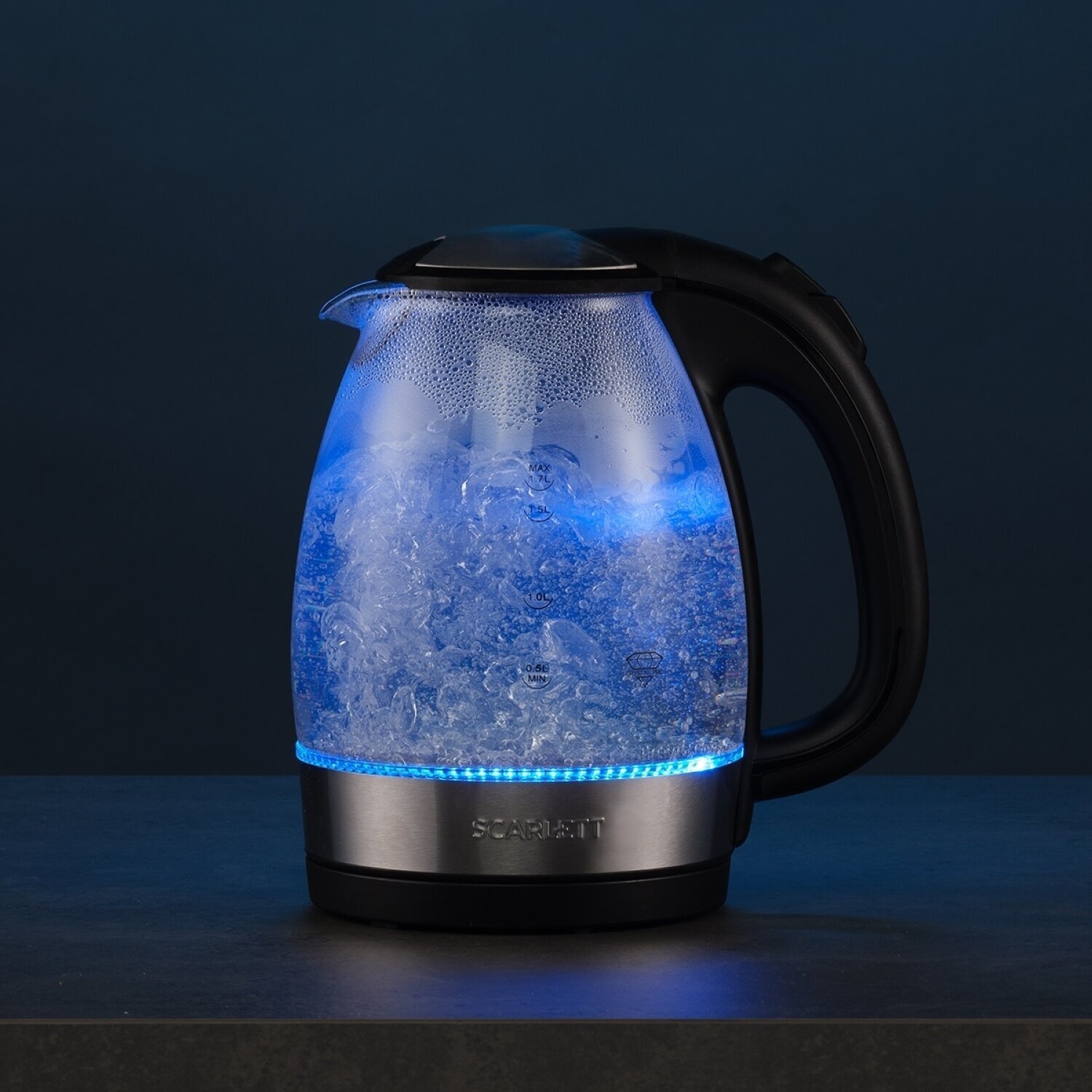 Чайник SCARLETT SC-EK27G91, 1,7 л, 2200 Вт, закрытый нагревательный элемент, стекло, черный