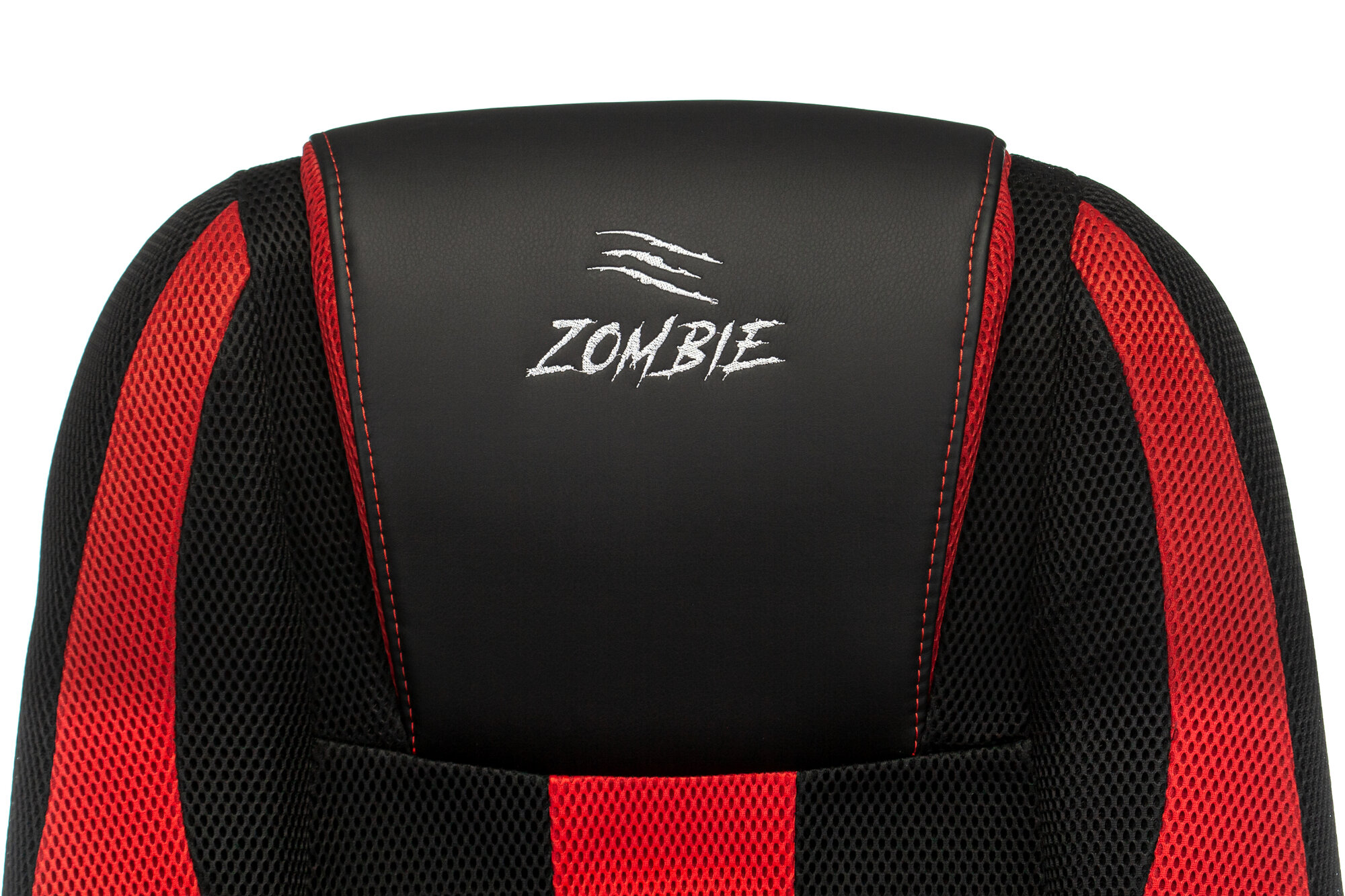 Кресло компьютерное игровое Zombie, экокожа, ткань, черное, красное, крестовина пластик - Кресло геймерское, с подголовником