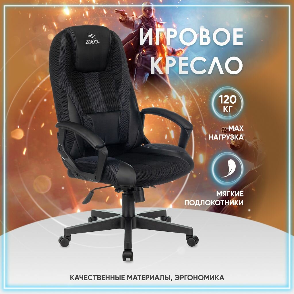 Кресло игровое для геймеров Zombie 9 черный, экокожа, ткань, Компьютерное геймерское кресло