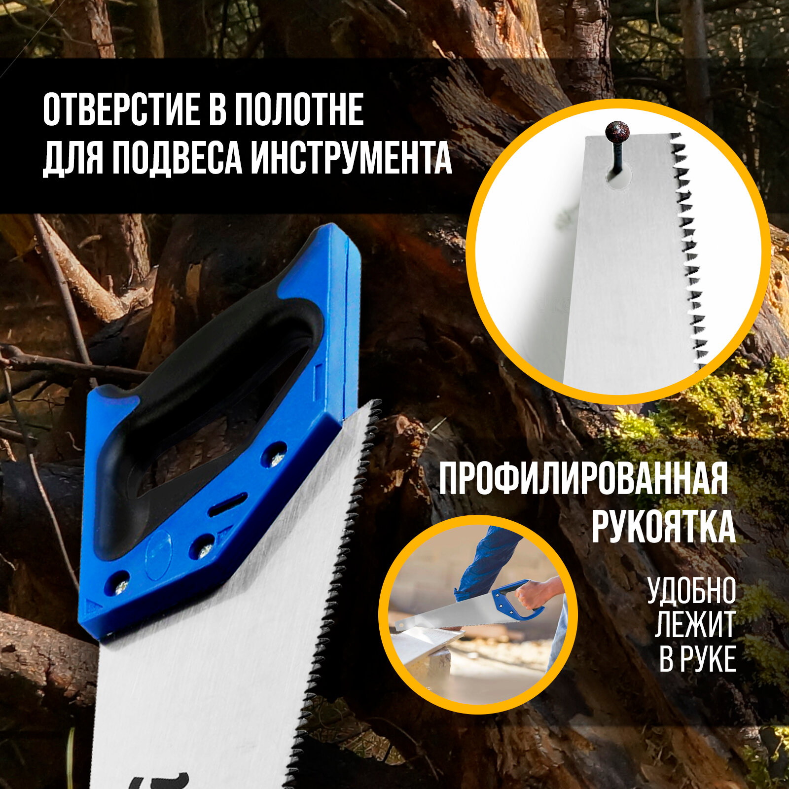 Ножовка по дереву тундра, 2К рукоятка, 3D заточка, каленый зуб, 7-8 TPI, 500 мм тундра 5155405 .