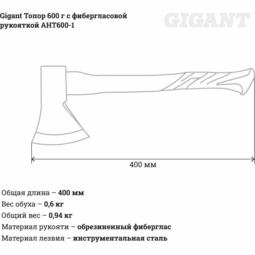 СохранитьGigant Топор 600 грамм с фибергласовой рукояткой AHT600-1 . интересное: