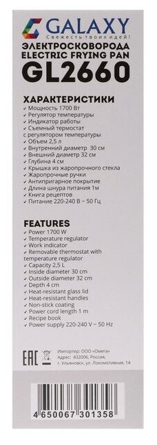 Электросковорода Galaxy GL-2660 2,5л 1700Вт интересное: