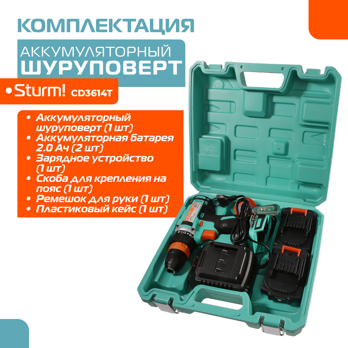 Дрель-шуруповерт аккумуляторная Sturm! CD3614T
