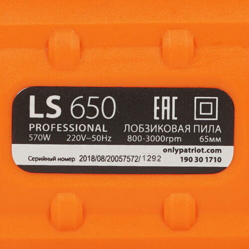 Электролобзик PATRIOT LS 650 2020, 570 Вт оранжевый/черный